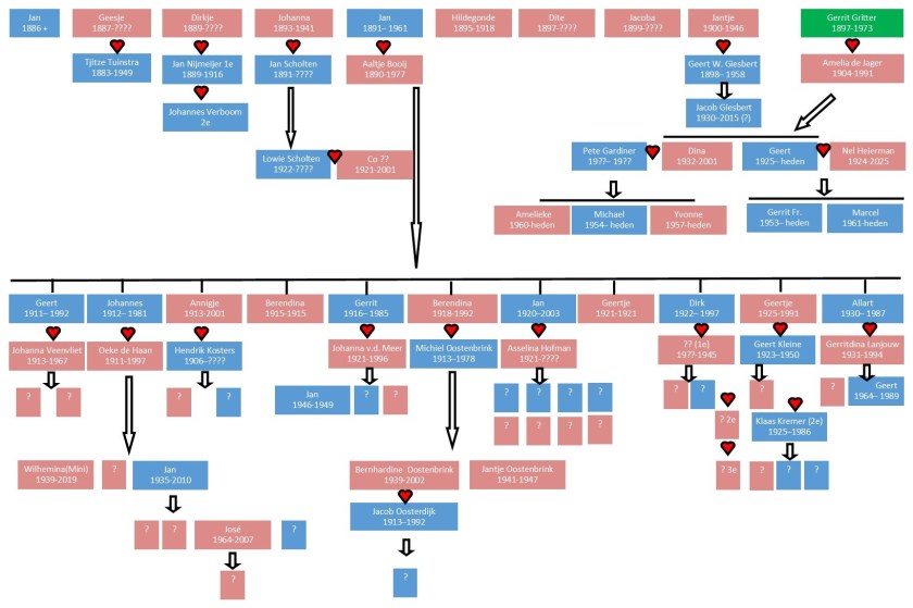 Het onderstaande rijtje Gritters (broers/zussen van opa Gerrit) heb ik nog wat nader uitgewerkt omdat ik een aantal van deze familieleden als persoon en uit verhalen heb mogen meemaken.