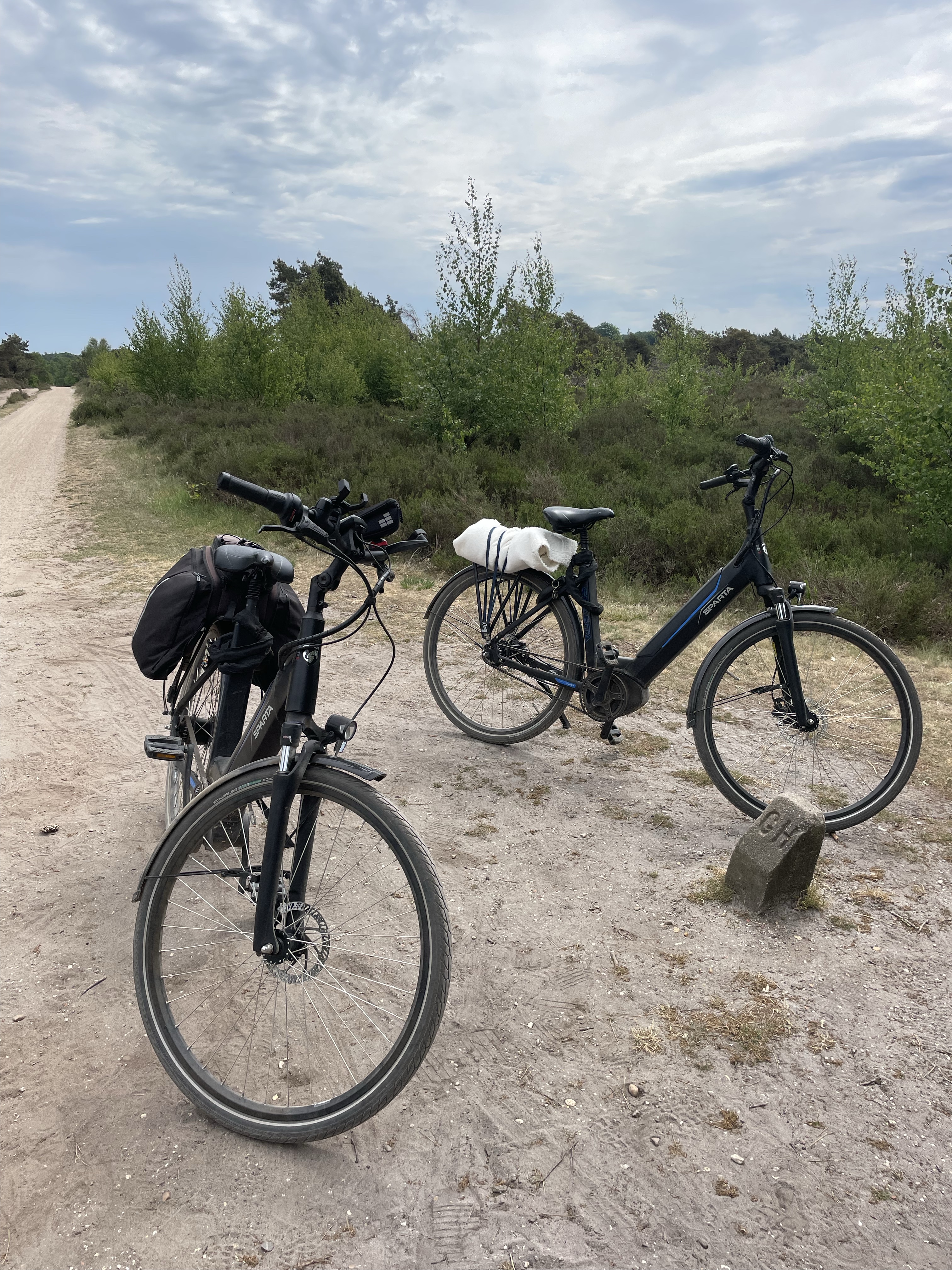 Om de blik wat te verruimen woensdag de fietsen weer op de trekhaak getild voor een tocht 20 km verderop, vanuit Barchem, nabij Lochem. De temperatuur loopt op naar 29 graden, maar in het bos is het heerlijk koel. Terrasje, ijsje en croissantje onderweg. Wat wil een mens nog meer.