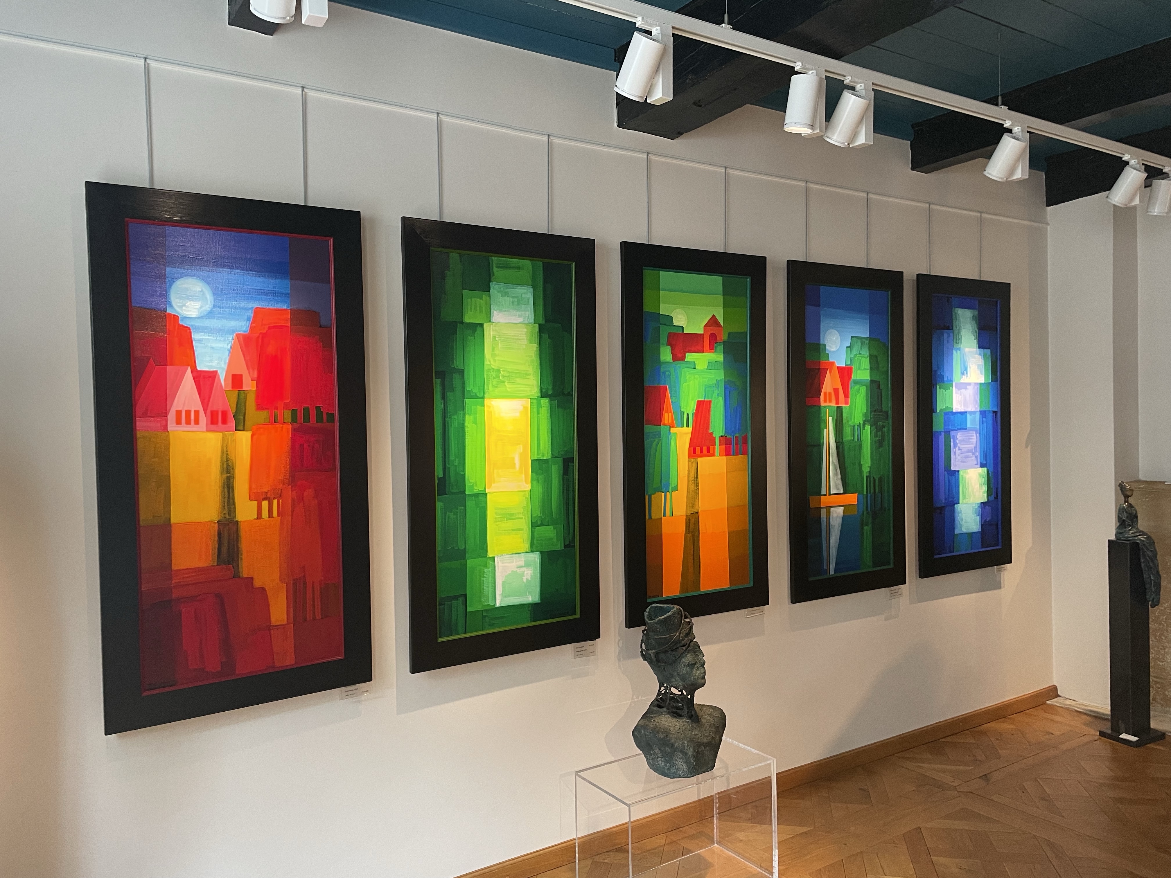 Deze verjaardag laat het weer ons wat in de steek. Het miezert, maar de temperatuur is goed. Eerste reisdoel is het Openluchtmuseum in Ootmarsum. Dit kunstenaarsdorp is fantastisch. Overal galleries (ja zo spel je het echt) met enthousiaste creatievelingen. Hoogtepunt voor ons is steeds weer de galerij (en het bijbehorende museum) van Ton Schulten. Wat schildert de man fantastisch. Zo kleurrijk. Hij is ook iedere keer wanneer wij langskomen prominent aanwezig in het dorp. Je kunt niet om hem heen.