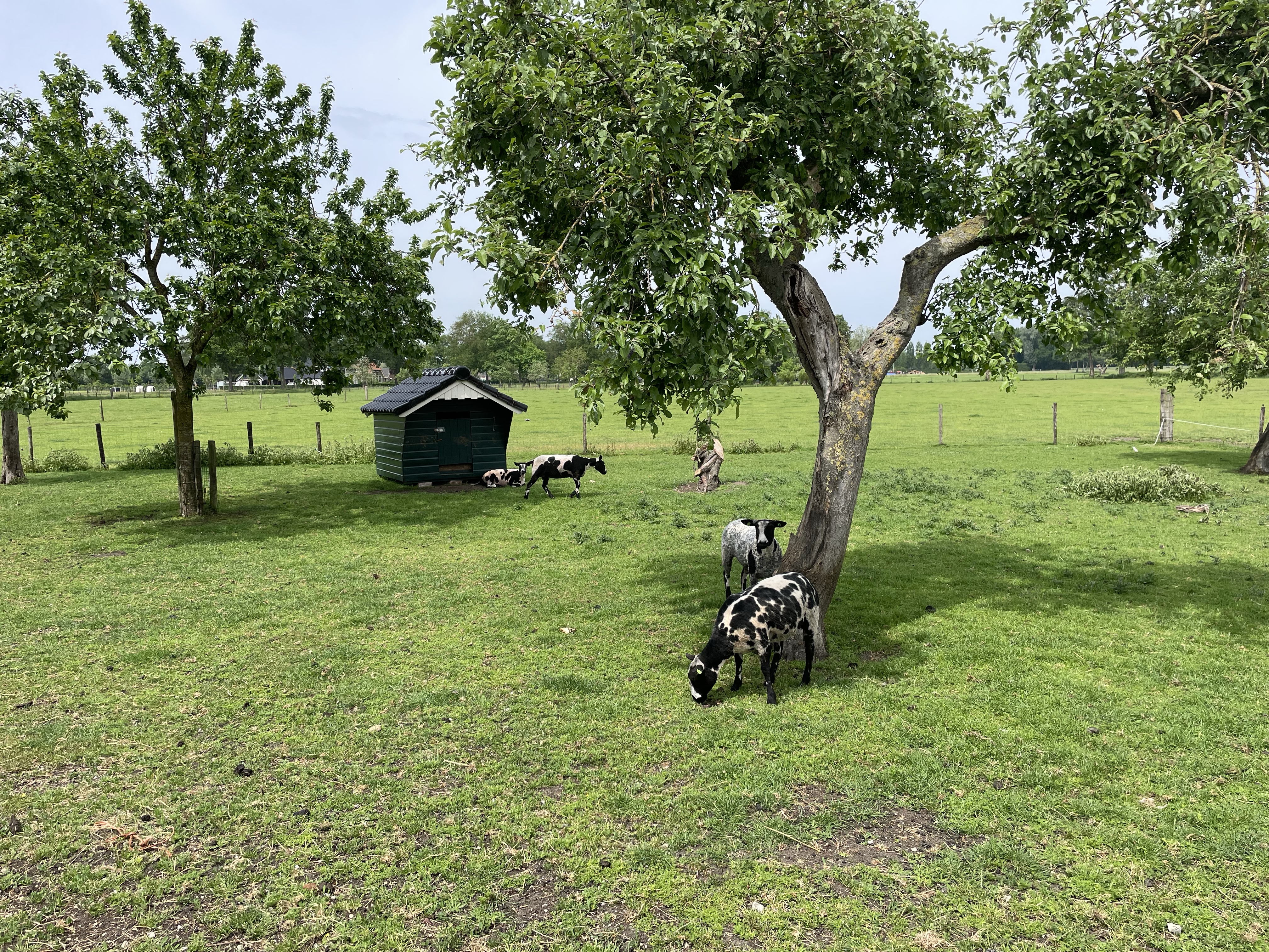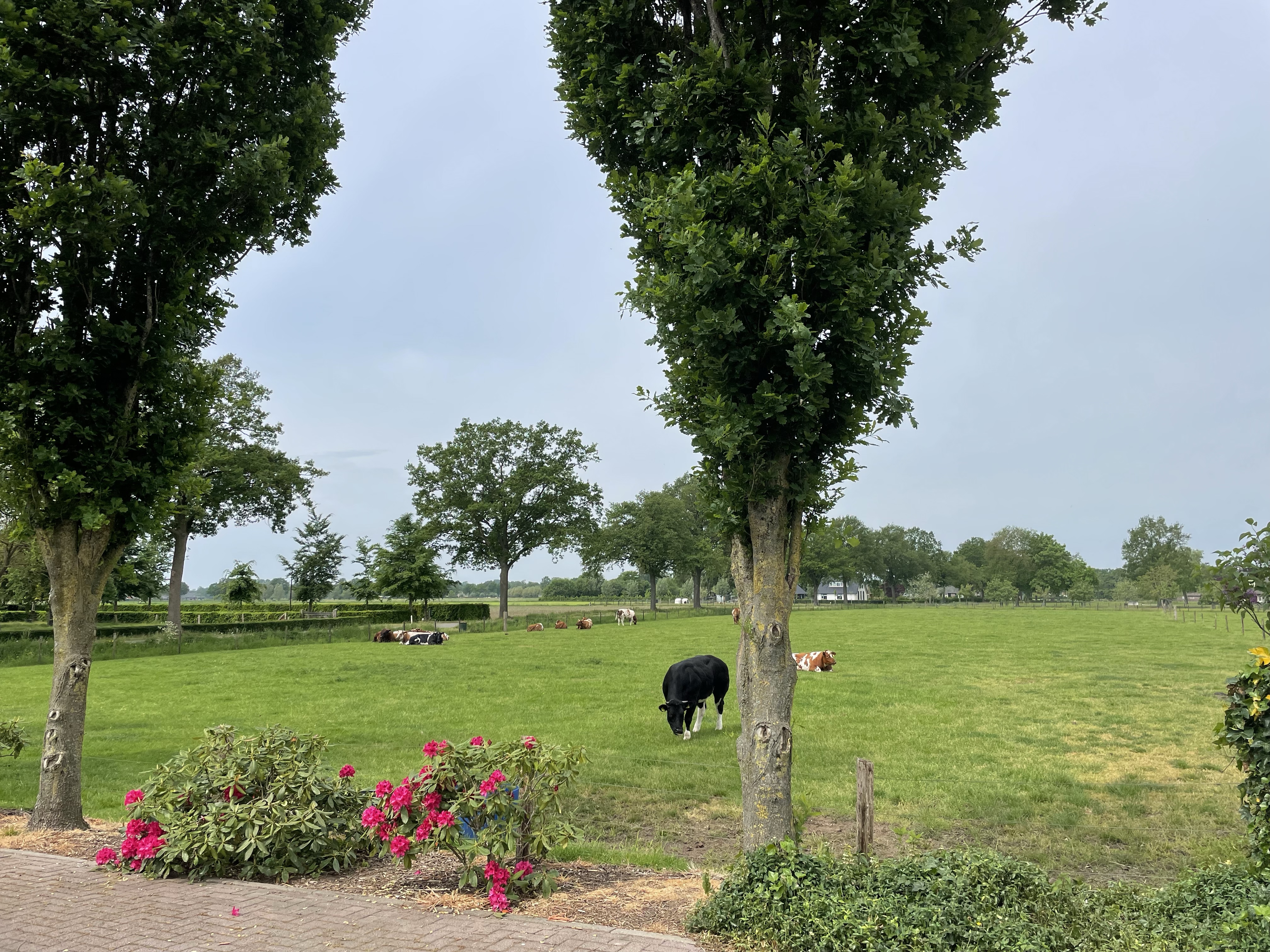 Vrijdag is alweer de slotdag. Jammer dat je ‘s morgens zo vroeg al uit je bungalowtje moet. Ons reisdoel Epe ligt op 50 km afstand. Vandaag op bezoek bij twee ontzettend hartelijke en lieve vrienden Lia en Henk op hun boerderij. Henk is na het runnen van een camping nabij Epe alweer bijna 20 jaar hobbyboer. Rond de boerderij lopen 25 dikbil koeien met 25 kalveren, geiten, schapen, kippen, een paar pony’s en wat konijnen. Lia werkte tot voor kort in de zorg. Wij leerden hen in 2015 min of meer per ongeluk kennen. Ik had door complicaties na het verwijderen van een nier en mijn milt de operatie ternauwernood overleefd en wij durfden nog geen buitenlandse reis aan. Ik zag een advertentie van een vakantievilla bij een boerderij in Epe. Deze was nog vrij en zo tussen de koeien leek ons wel avontuurlijk. Het vakantiehuis werd gebouwd om te dienen als ruimte voor dagbesteding voor gehandicapten. Dat avontuur ging vanwege ambtelijke dwarsliggerij helaas niet door. Toen werd de bungalow geschikt gemaakt voor verhuur. Inmiddels hebben wij er al een paar vakanties doorgebracht omdat je er prachtige fietstochten kunt maken door de natuur. Je kunt je vrienden niet uitzoeken. Soms kom je ze gewoon per ongeluk tegen. Vanaf dag één was er een klik tussen ons vieren. Dat is zo mooi. Jaarlijks gaan wij wel een keertje op bezoek met aansluitend een fietstocht. Joyce en Lia ondernemen samen regelmatig leuke culturele uitstapjes, afwisselend in elkaar woonomgeving.