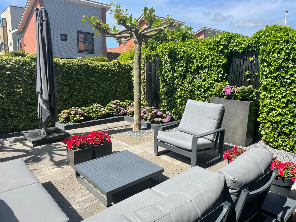 Het is inmiddels zondag. Joyce en nicht Annelies zijn als begeleiders mee met hun beiden moeders op een minicruise tussen Spijkenisse en Dordrecht. Ik geniet op deze laatste dag van de week van de recent door ons gerenoveerde tuin. De nieuw aangelegde hortensiaborder doet het fantastisch, de bloembakken kleuren vrolijk, de hosta’s groeien de bak uit en de flink teruggesnoeide dakplatanen beginnen mooi uit te lopen. Zo dadelijk nog naar de verrichtingen van Max kijken tijdens de Grandprix van Barcelona en dan zit week twee van “de week van Fritz” er weer op.