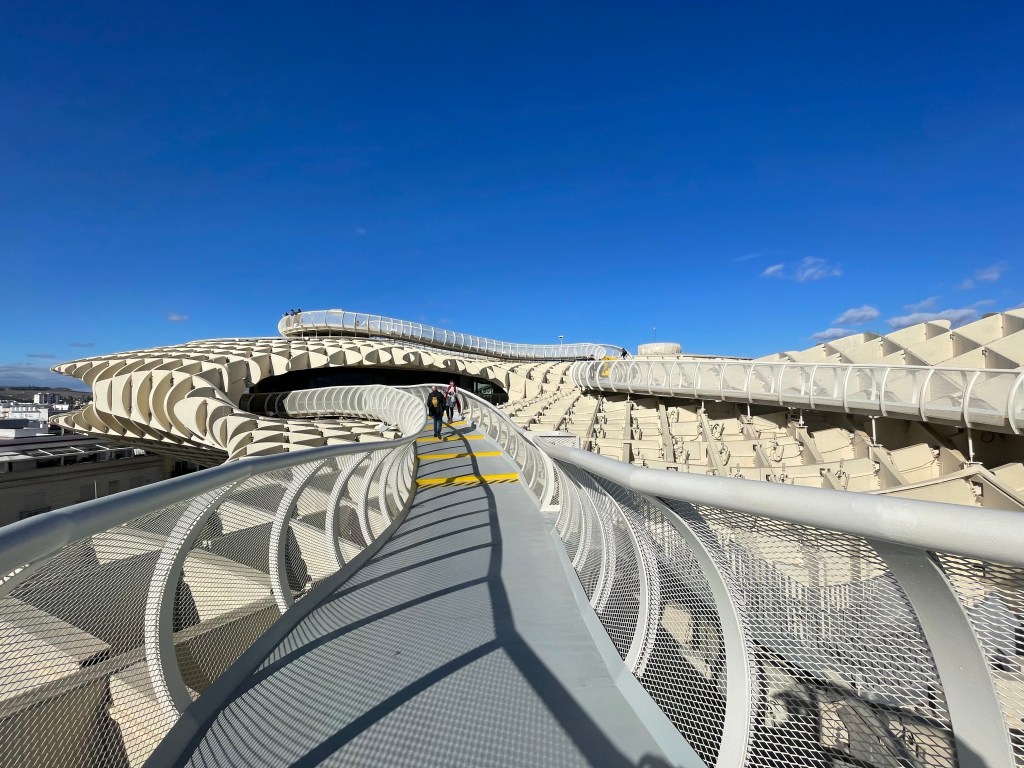 Dag vier (zaterdag) zijn wij al weer vroeg terug in de binnenstad. Joyce heeft een bezoek schema gemaakt met hoogtepunten. Normaal heeft Joyce wat moeite met het vinden van de juiste richting, maar ze beweegt zich door Sevilla als een ervaren gids. Ik noem haar vanaf vandaag ‘Tom (-Tom-) Joyce’. Sevilla is de stad waar de Flamenco is geboren. Door de overheersing van de Moren en Christenen vind je er een prachtige mengelmoes aan stijlen. Onze wandeling leidt als eerste naar Plaza de España (foto 1,2 3). Het prachtige Spaanse paviljoen is een overblijfsel van de Spaans-Amerikaanse tentoonstelling in 1929 en staat symbool voor de vrede over de koloniën. Door het prachtige Maria Luisa park (4) en langs de oevers van de Guadalquivir rivier wandelen wij naar de Torre del Oro (de gouden toren) (5). Deze toren maakte destijds deel uit van de Moorse stadswal en diende als opslagplaats van goud uit de Nieuwe Wereld (Mundus Novus). Die naam werd voor het eerst gebruikt door ontdekkingsreiziger Amerigo Vespucci. Hij wilde hiermee aangeven dat zijn voorganger Christoffel Columbus niet Azië had bereikt via de westelijke route, maar een geheel nieuw deel van de wereld. Na een koffiestop vervolgen wij onze weg richting de Kathedraal de Santa Maria de la Sede en Giralda toren (6,7) De Kathedraal is het grootste gotische kerkgebouw ter wereld. Columbus ligt hiet begraven. De kathedraal zelf is gebouwd over de resten van een Moorse moskee. Alleen de Giralde toren is nog een restant van die moskee. Wij passeren het Koninklijke Alcázar paleis (8), maar stellen een bezoek uit tot de volgende dag. Wij vervolgen onze wandeling door de oude Joodse wijk Santa Cruz. Een doolhof van straatjes met winkeltjes en restaurantjes. Laatste wandeldoel vandaag is Metropol Parasol – Setas de Sevilla oftewel de Paddenstoelen van Sevilla (9,10). De grootste houten constructie ter wereld uit 2011 met een panoramaterras, een wandelbrug en een archeologisch museum. Eigenlijk zou op het al 37 jaar braak liggende stuk grond een parkeergarage gebouwd worden, maar de vondst van resten van een Romeinse kolonie verhinderde dat. Er werd een prijsvraag uitgezet die gewonnen werd door de Duitse architect Jürgen Mayer met zijn paddenstoelen bouwwerk. Hij heeft wel een beetje afgekeken van Gaudi’s Casa Milà in Barcelona. Op het 26 meter hoge bouwwerk ligt een wandelpad dat doet denken aan het wandelpad op Casa Milà. Wij lazen dat er een speciale toegangsprijs gold voor 65+ bezoekers. Dat is mooi dachten wij, want de toegang is prijzig. Helaas alleen voor louter 65+ Spanjaarden. Niet toerist-vriendelijk.