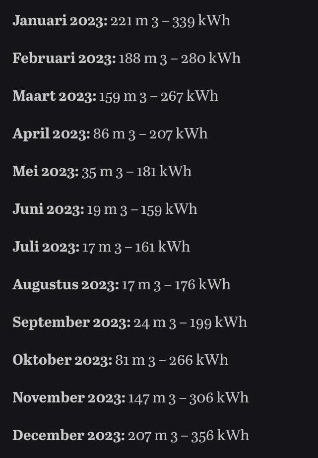 Een nieuw voorbeeld van nodeloos ingewikkelde regelgeving is het prijsplafond voor de energie. Het leek zo simpel en te overzien. Wanneer je energieverbruik in 2023 maximaal 1200 kuub gas is en 2900 kWh stroom, dan betaal je de maximale prijs van € 1,45 per kuub en € 0,40 per kWh. Alles wat je meer verbruikt is duurder. Heel eenvoudig te snappen en je hebt zelf de regie om meer te gebruiken. Maar nee….iets wat eenvoudig lijkt, wordt ingewikkeld gemaakt. Van belang is namelijk het moment van de jaarafrekening. Stel dat de jaarafrekening eind juni komt, dan is er een plafond tot de jaarafrekening en eentje daarna. Ben je tot de jaarafrekening zuiniger dan dit plafond dan raak je het niet verbruikte deel kwijt voor de rest van het jaar. In dit voorbeeld wordt er vanaf 1 juli tot 31 december een nieuw plafond berekend. Verbruik je in deze periode meer dan het nieuwe plafond, maar is je totaal over het hele jaar 2023 nog altijd minder dan 1200 kuub gas of 2900 kWh stroom, dan betaal je toch de dure prijs voor het teveel in juli/december. De delen voor en na de jaarafrekening worden dus niet opgeteld. Omgekeerd is dat ook zo. Stel dat je tot de jaarafrekening meer verbruikt, maar daarna minder en blijf je onder het plafond, dan nog betaal je over de periode tot de jaarafrekening de dure prijs over het meer-verbruik. Pech dat je na de jaarafrekening zuiniger bent. Er wordt dus in beide gevallen niet naar het totale verbruik in 2023 gekeken. Om binnen het plafond te blijven zijn er verbruikshoeveelheden opgesteld. Om dus geen verrassingen te krijgen, kijk je wanneer de jaarrekening komt en zie je in het onderstaande lijstje hoeveel je voor en na die jaarrekening mag verbruiken om binnen het plafond te blijven.