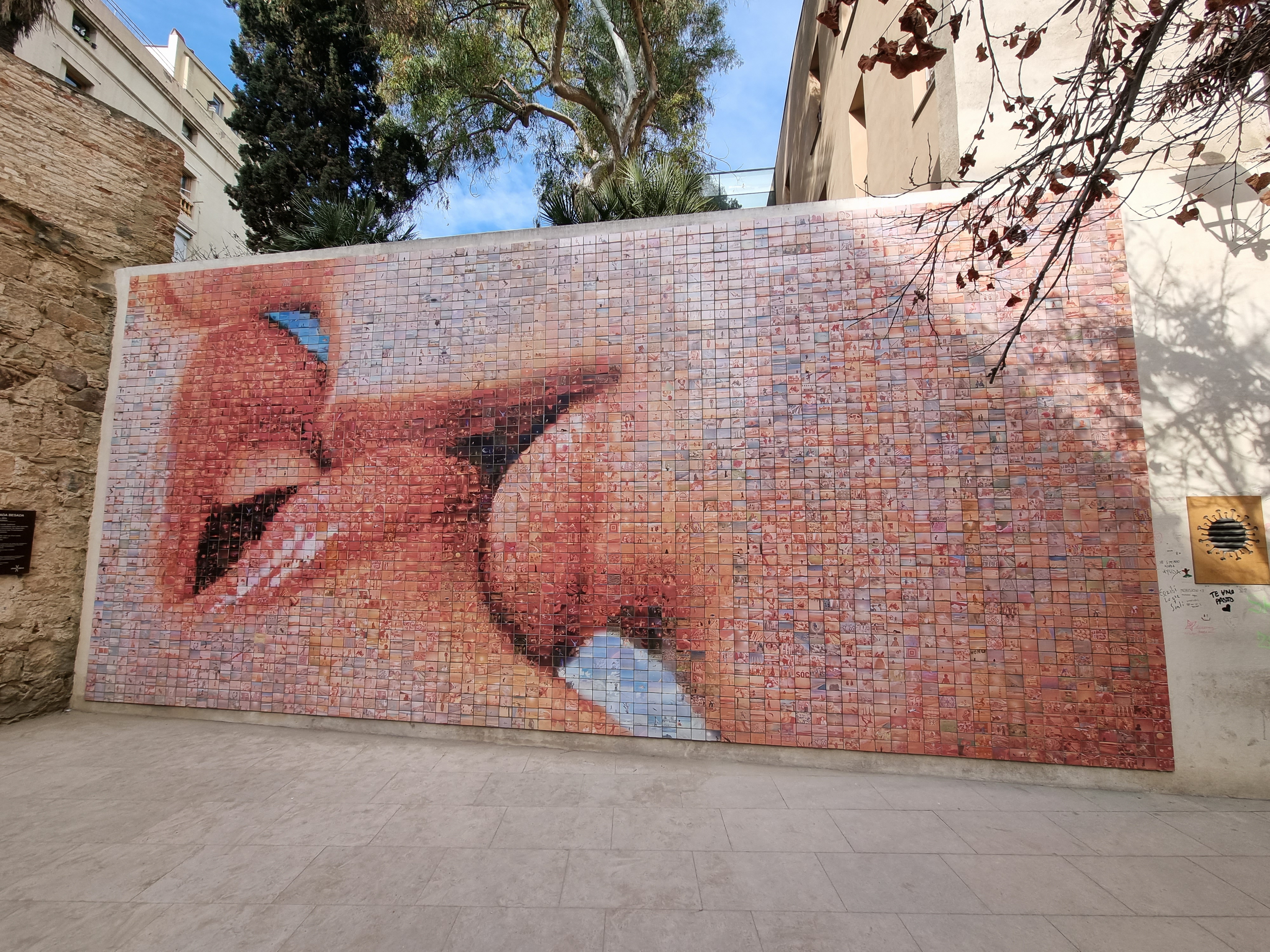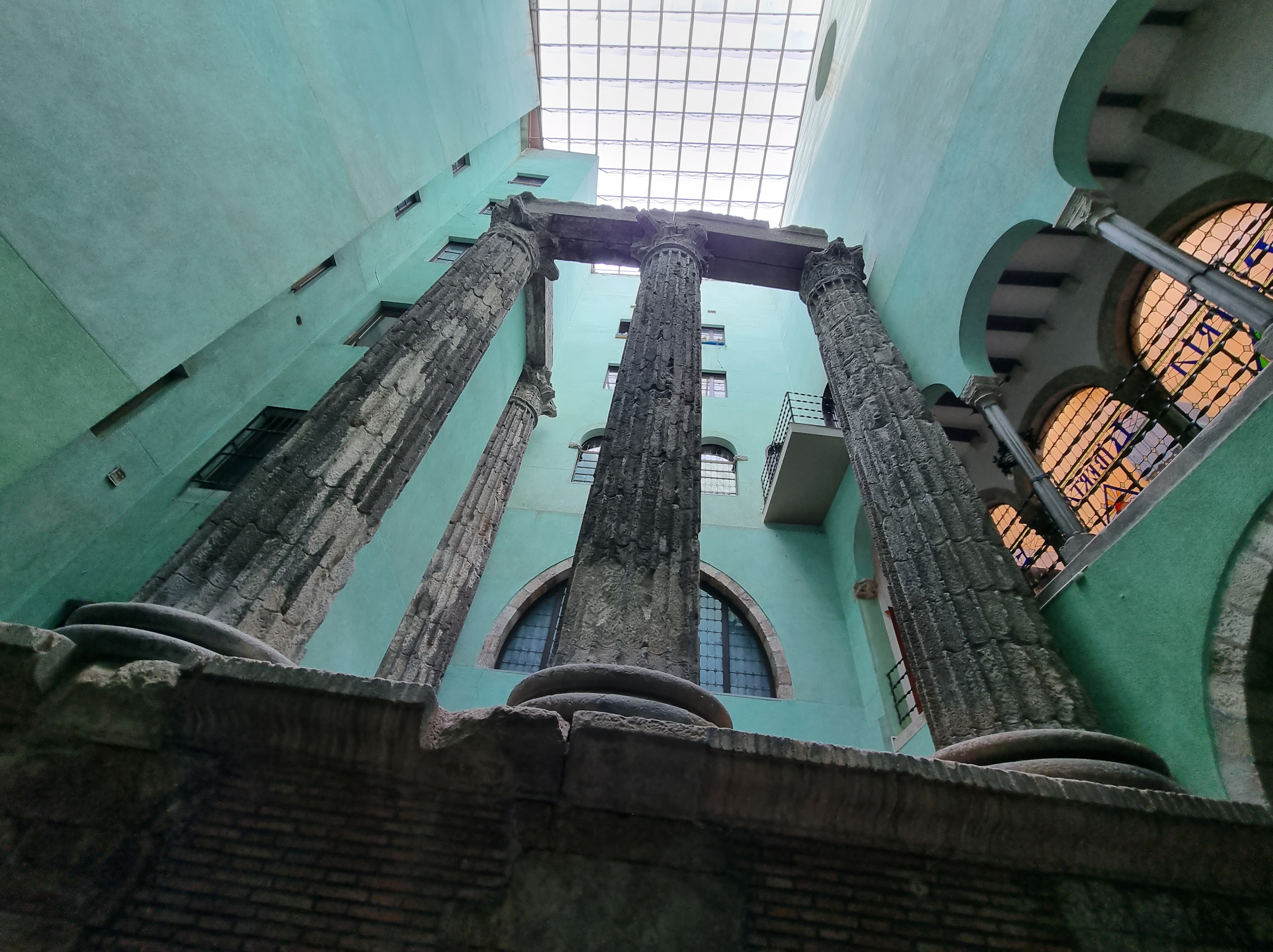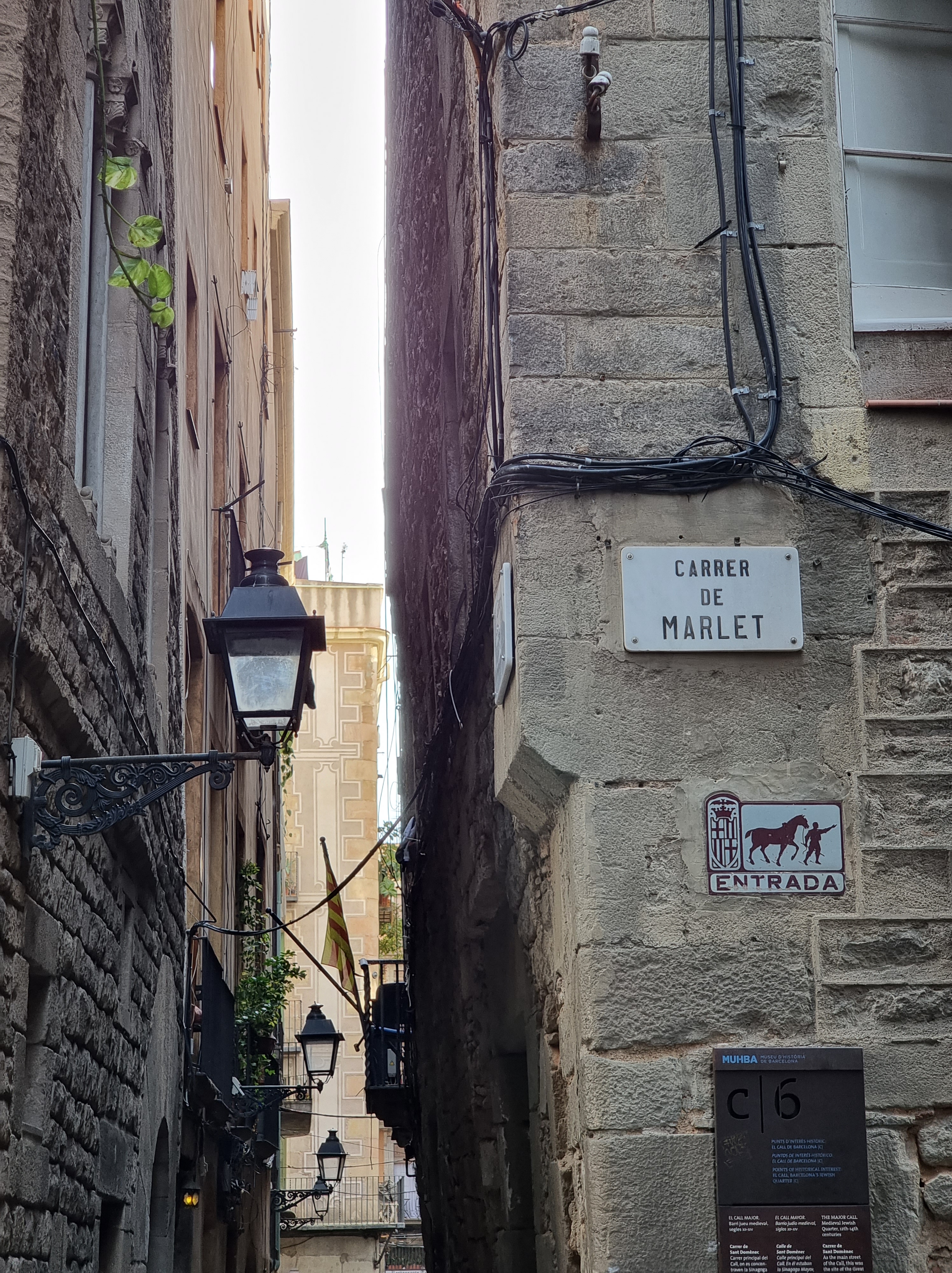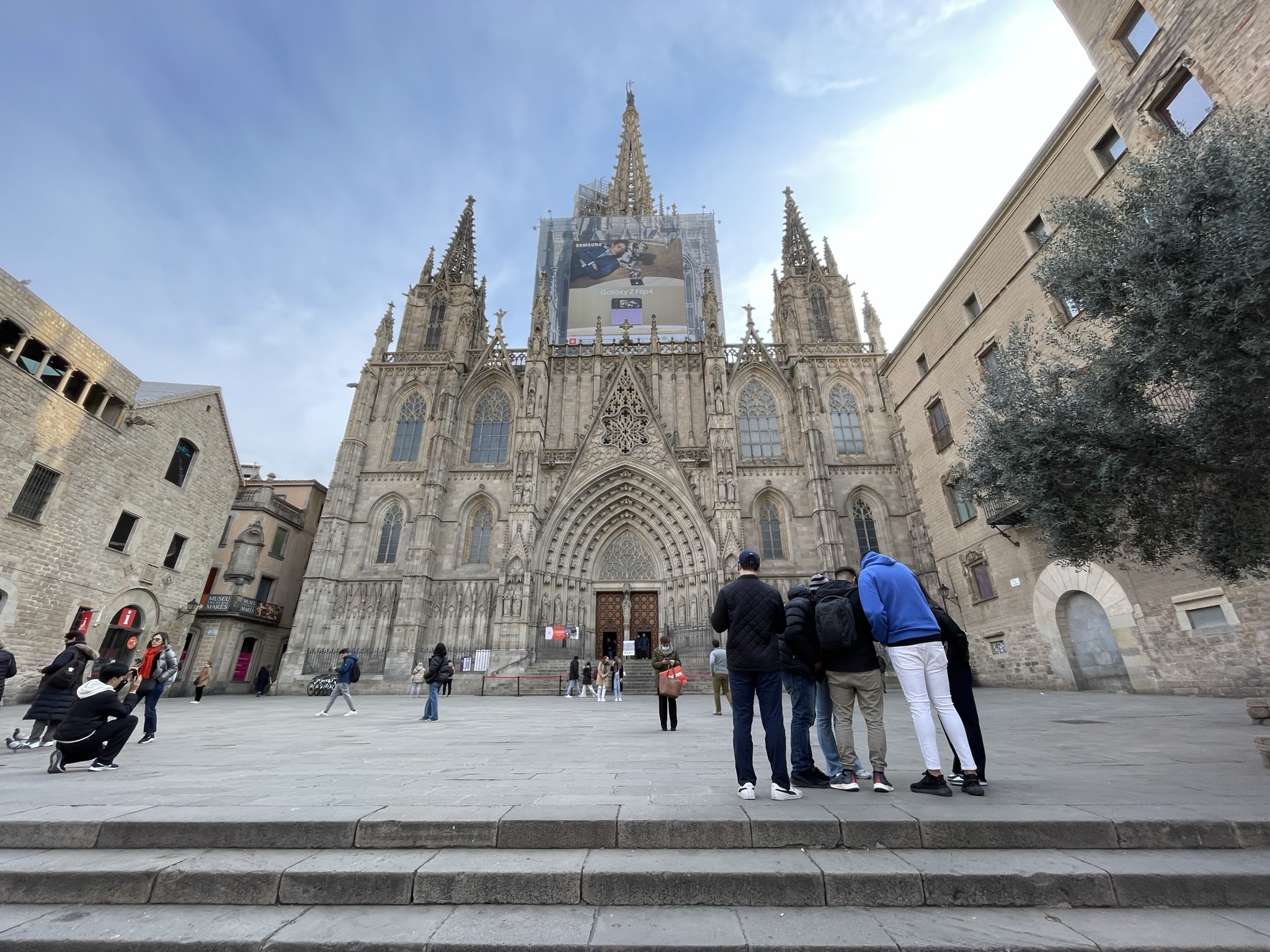 Jasper regelt kaarten waarmee wij drie dagen onbeperkt met het openbaar vervoer kunnen reizen. Overigens sowieso handig om Jasper kaartjes te laten regelen, want hij weet ze overal met korting te bemachtigen. Oké, soms moeten wij daar digitaal voor even de Spaanse nationaliteit aannemen (50% korting). Met de metro richting Sagrada Familia waar ons appartement ligt. De temperatuur is inmiddels een stuk aangenamer en en het zonnetje schijnt. Koffertjes neergezet en de stad in voor een terrasje. Daarna treffen wij Antonio, de gids die ons een rondleiding geeft door de ‘Barri Gòtec’ (Gotische wijk), het oude centrum van de oude stad (‘Ciutat Vella’), van Barcelona. Een labyrint van kleine straatjes die uitkomen op de bekende pleinen van Barcelona. De straatjes zijn zo smal dat er overal bordjes hangen die de richting aangeven voor het verkeer met paarden in vroeger tijd. Je vindt er eeuwenoude gebouwen, die soms nog dateren uit de Middeleeuwen en de Romeinse tijd. Voorbeelden: de resten van de tempel van keizer Augustus, het Palau Reial (koninklijk Paleis) waar Columbus na zijn terugkeer uit Amerika werd ontvangen door Koning Ferdinand II van Aragon en Isabelle I van Castilie, de kathedraal van Barcelona en een pleintje waar een schooltje is gevestigd. Spelende schoolkinderen op zo’n binnenpleintje oogt vreemd. De gevel van het gebouw zit bovendien vol kogelgaten. In de 2e wereldoorlog schuilden hier kinderen. Het gebouw werd echter beschoten en de kinderen overleefden het niet. Naast het schooltje was een klein ziekenhuis, waar Gaudi zijn laatste adem uitblies nadat hij onder een tram was gekomen. Een pleintje met een geschiedenis dus. Jasper kust de schildpad op de brievenbus in de gevel van het middeleeuwse paleis Casa de l’Ardiaca (huis van de Aartsdiaken = plaatsvervanger bisschop). Deze brievenbus is versierd met zwaluwen, klimop en een schildpad. Het is een verwijzing naar het verleden van dit gebouw als College van advocaten van Barcelona. Het laat zien hoe het recht werkt. Hoewel het snel als de zwaluwen zou moeten zijn, is het vanwege de bureaucratie (klimop) eigenlijk zo traag als een schildpad. De schildpad kussen betekent een goed, lang en gelukkig leven.