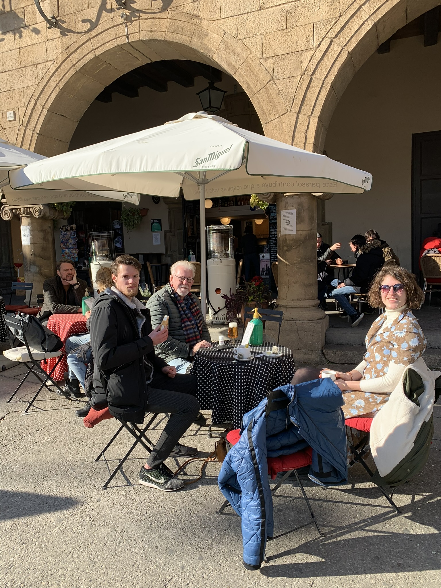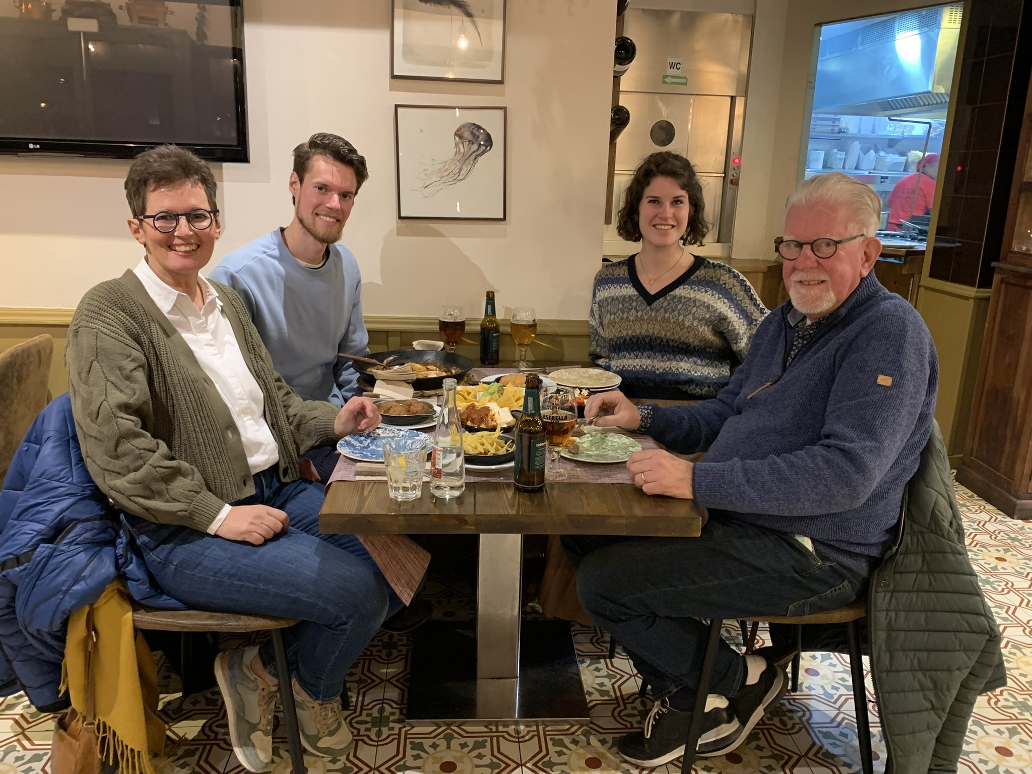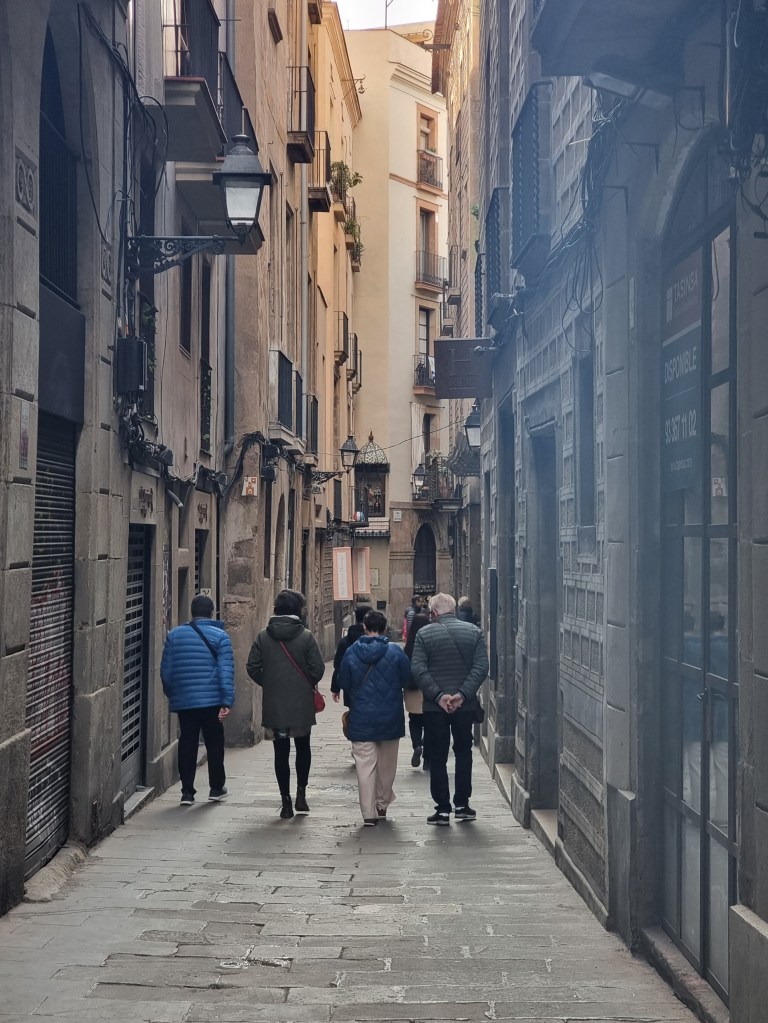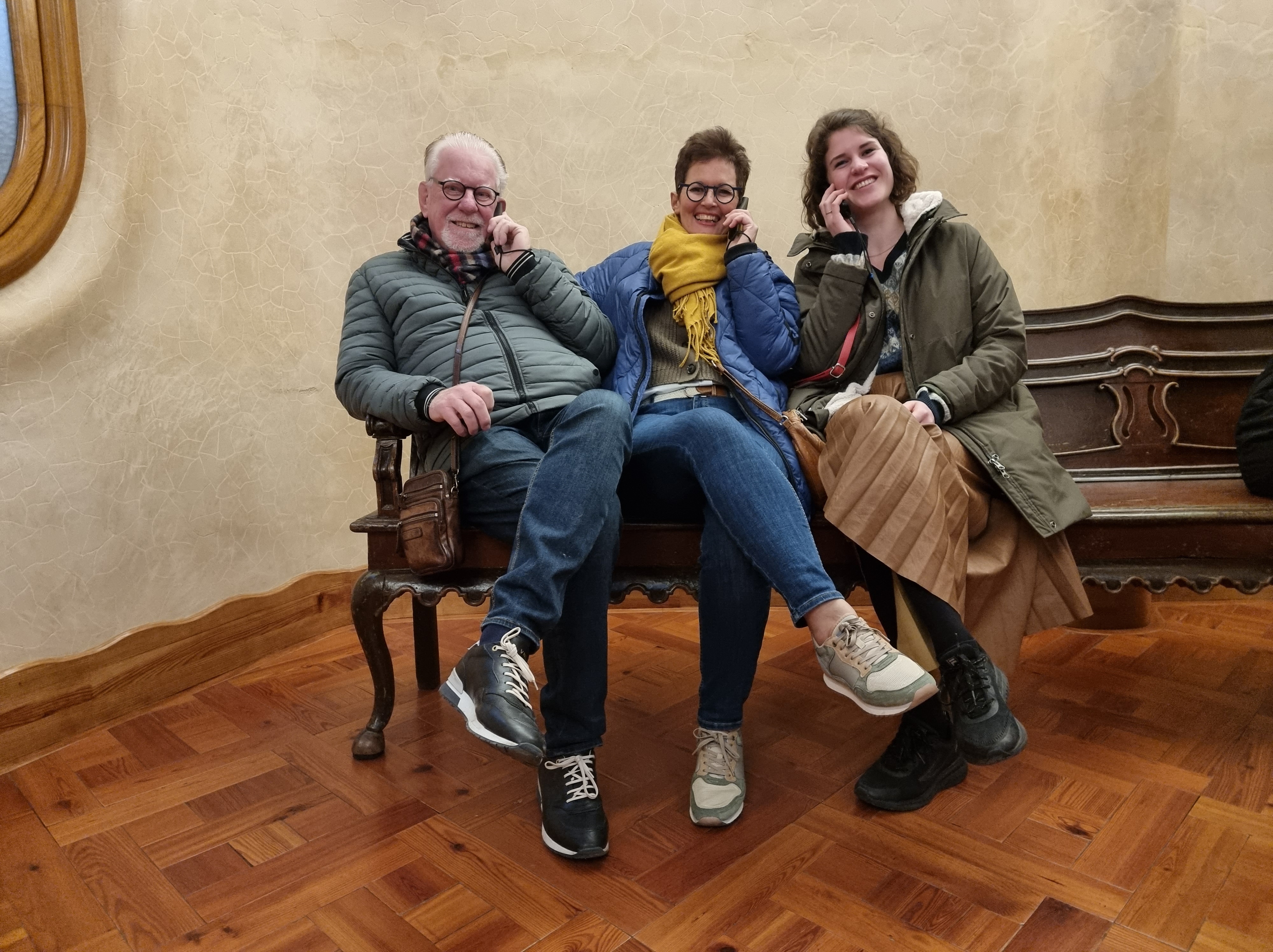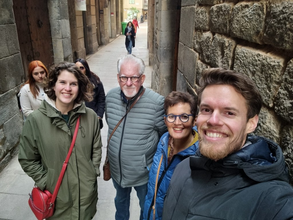 BARCELONA dag 1: om 3.00 uur in de nacht staan wij andermaal bij een koude en winderige bushalte in ons dorp. Eigenlijk veel te vroeg, maar precies tussen 2.00 en 5.00 uur is de dienstregeling sinds december behoorlijk uitgekleed. Het is zoals het is. Om 3.30 uur zitten wij in de vertrekhal op Jasper en Claudia te wachten. Afspraak is 4.00 uur, maar dat wordt pas tegen 4.30 uur. Zij komen op de fiets naar Schiphol en moeten die verderop eerst stallen. Dan begint het wachten tot 6.00 uur wanneer de gate op gaat. Het toestel is stampvol, dus kennelijk willen meer mensen in dit jaargetijde naar Barcelona. De vlucht was kort en om half negen stonden wij al op een koud vliegveld (3 graden) van Barcelona.