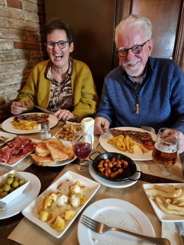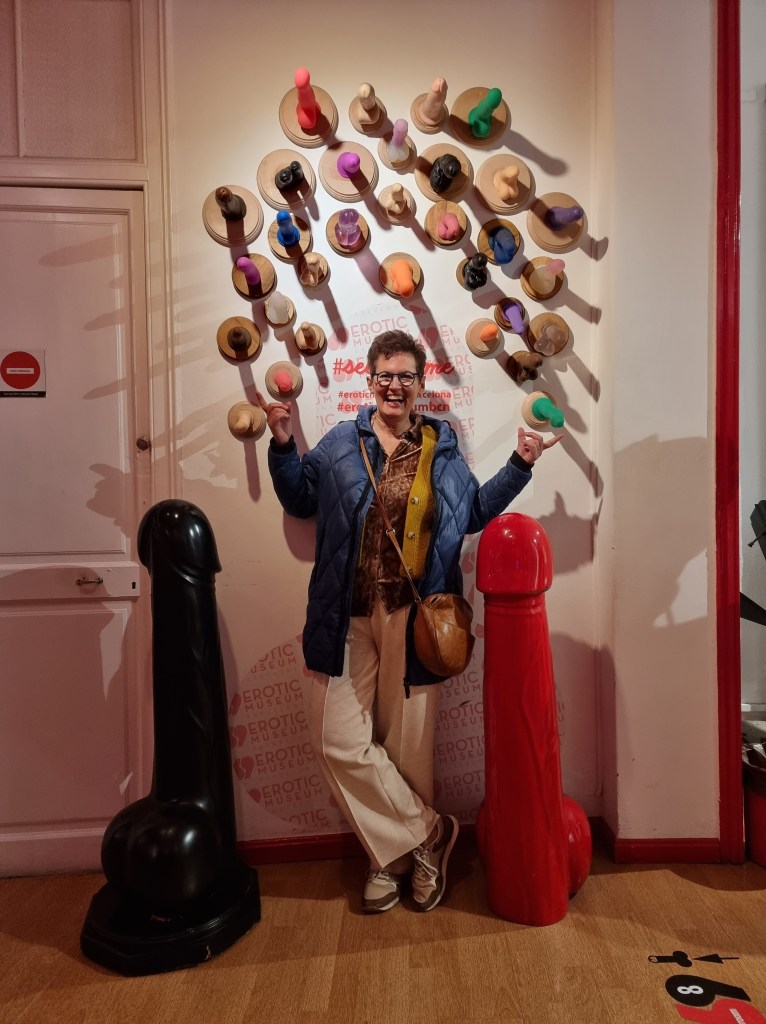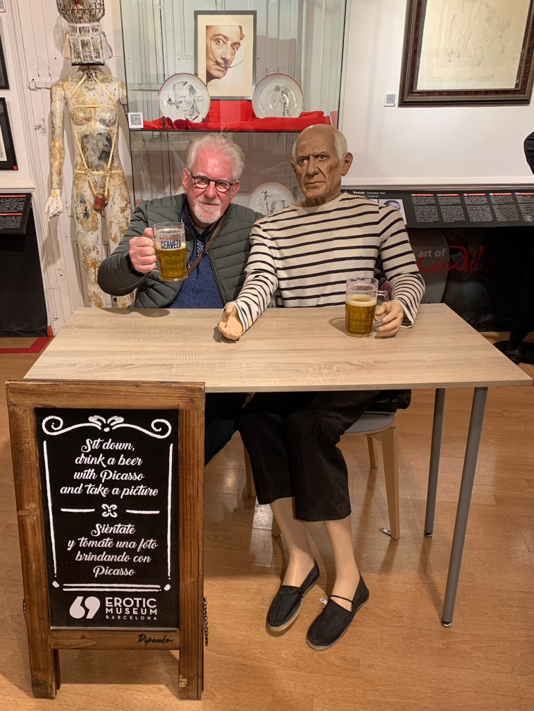Aansluitend neemt Antonio ons mee naar een tapas restaurant voor een glas champagne. Wij doen ons tegoed aan diverse tapas gerechten als gegrilde aubergine, tortilla, pittige kipkluifjes en gegrilde Chipirones (inktvis). Daarna wandelen wij de Ramblas af, langs de haven en bezoeken het erotisch museum. Veel kunstwerken, prenten en attributen die de geschiedenis van de erotiek wereldwijd weergeven. Ik dronk er beschaafd een biertje met Pablo Picasso, terwijl Joyce zich daarentegen enthousiast uitleefde met een heel ander kunstwerk. Ja, je let even niet op en mevrouw springt uit de band. Afsluitend heerlijk eten bij een gezellig restaurantje.
