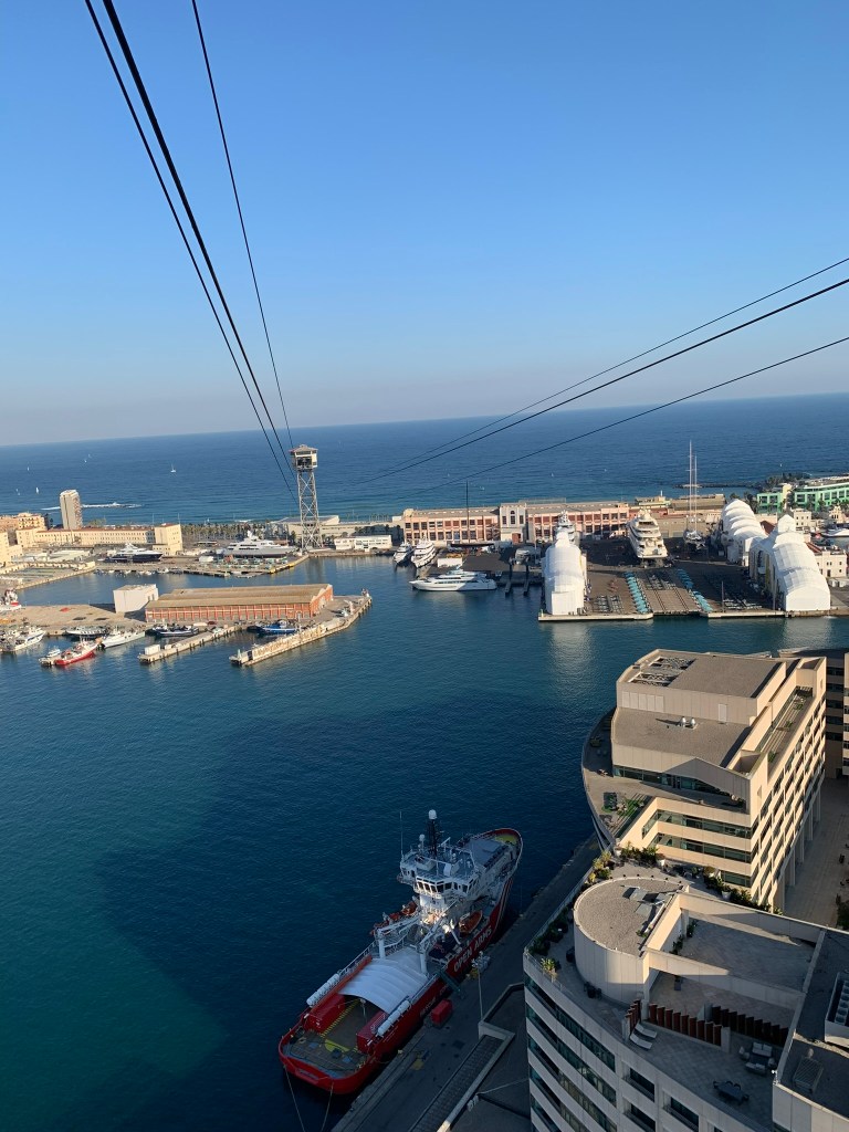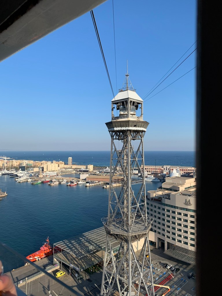 We pakken aan het eind van de middag de bus richting kabelbaan. Deze kabelbaan vervoert je van de Montjuïc, over de haven naar het strand. De cabine wordt gevuld met veel te veel toeristen en we zitten een beetje als haringen in een ton. Maar het is wel een erg leuke ervaring. We puffen een half uurtje uit aan het strand. Nog een wandeling over de boulevard en dan met de bus terug naar ons appartement. Koffers ophalen en met de metro terug naar het vliegveld van Barcelona. Wel wat vertraging. Rond 1.00 uur ’s nachts nemen wij afscheid van Jasper en Claudia. Wat was het gezellig met z’n viertjes. Heerlijke gesprekken en veel gelachen. Zij stappen op hun fietsen terug naar Amsterdam, wij hebben net de bus van 1.00 uur gemist en moeten wachten op die van 2.00 uur. Maar, gelukkig ziet Jasper hem nog net op de halte voorbij het stationsgebouw van Schiphol staan. Hij spreekt de chauffeur aan en deze belooft ons alsnog verderop op te pikken. Wat een service. Doodmoe storten wij om 2.00 uur ons bedje in, om er pas de volgende dag om 12.00 uur uit te komen.