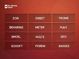 De Slimste Mens: En dan kwam er deze week ook een einde aan het 21e seizoen van ‘De Slimste Mens’. By Far onze favoriete kennisquiz, gepresenteerd door Philip Freriks met als juryvoorzitter brombeer Maarten van Rossum. Als trouwe kijkers missen wij al jaren geen aflevering en puzzelen vrolijk mee. Elk seizoen duiken er weer nieuwe Nederlanders op waar je van gaat houden. Het programma helpt die mensen vaak ook verder. Denk b.v. aan Rob Kemps (van de Snollebollekes) die er inmiddels een flinke tv-persoonlijkheid door is geworden (b.v. Chansons). Favoriet onderdeel bij ons is toch wel de puzzel. Drie verbanden leggen van telkens vier woorden. Voor wie het niet kent en eens wil proberen, hieronder wat voorbeelden. In het eerste plaatje vormen de woorden scholing–leven–staan we sterk–werking een verband. Het woord dat ze verbindt is: ‘Samen‘. Zo zijn er in het eerste plaatje nog twee van die verbanden. Zie jij ze? Ook in de andere plaatjes?