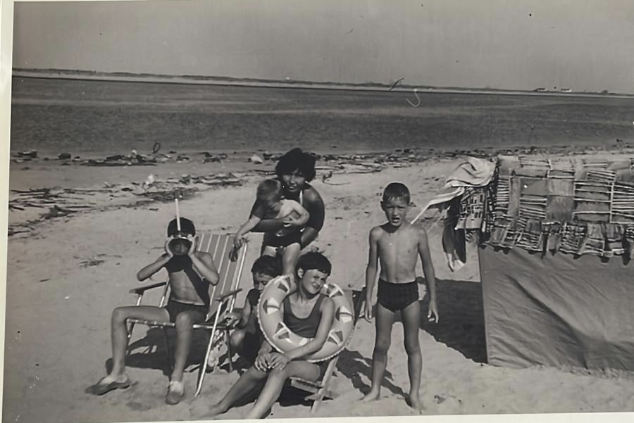 Uit de oude doos: Van nicht Annelies ontvingen wij deze week een jeugdfoto van Joyce. Met haar tante Alsa en kinderen ergens aan de kust van de Zuid-Hollandse eilanden. Joyce in de zwemband.