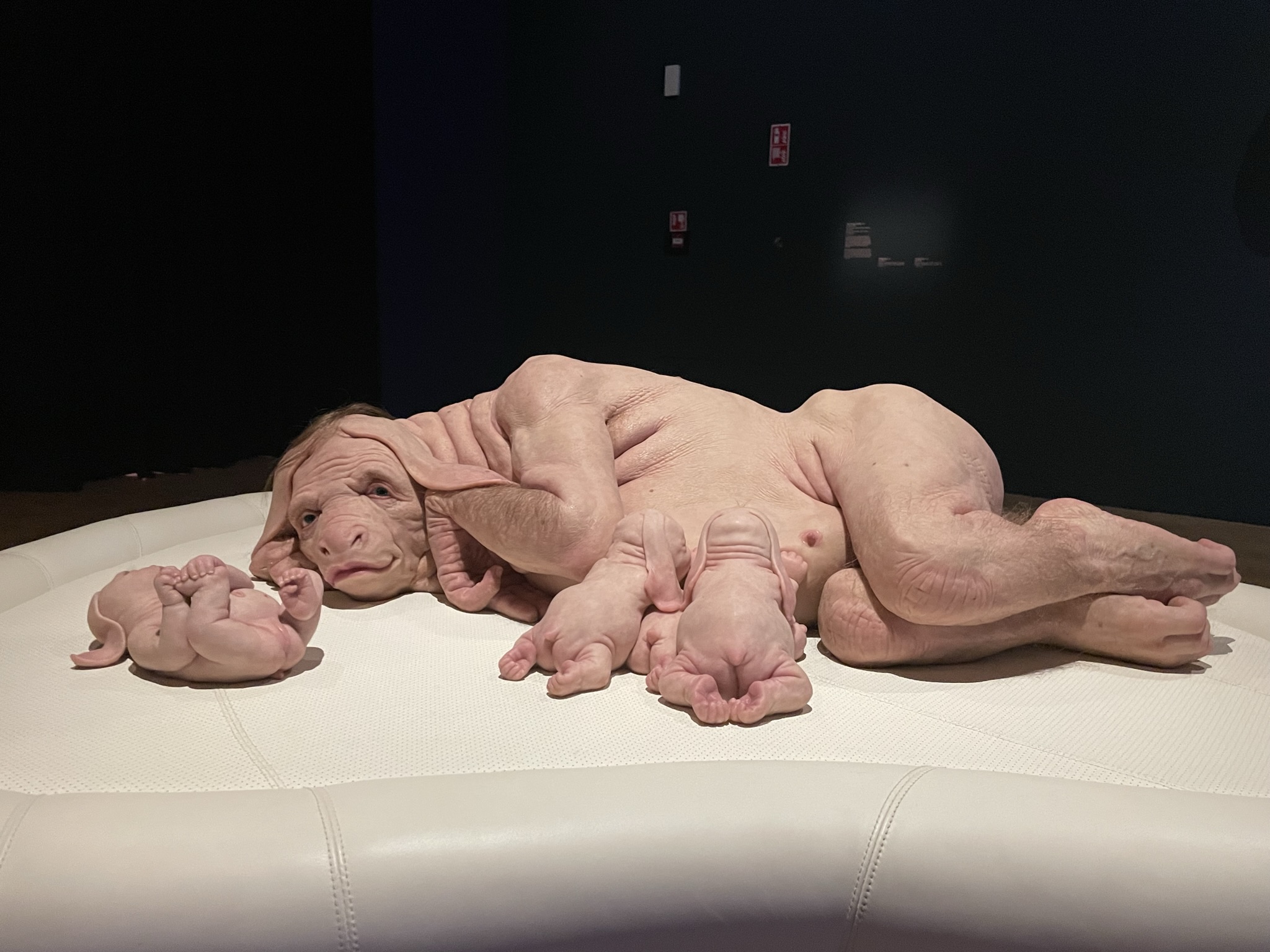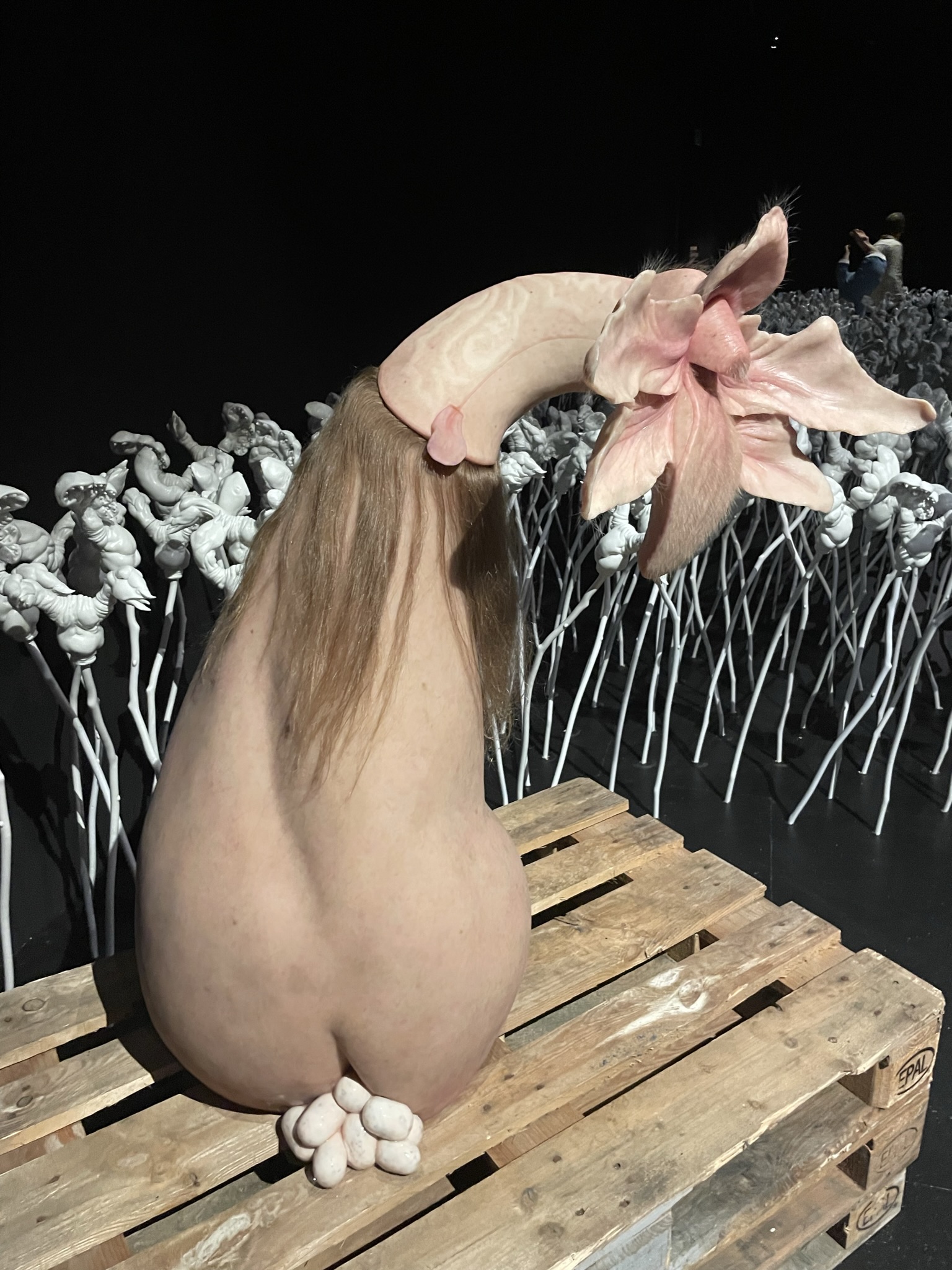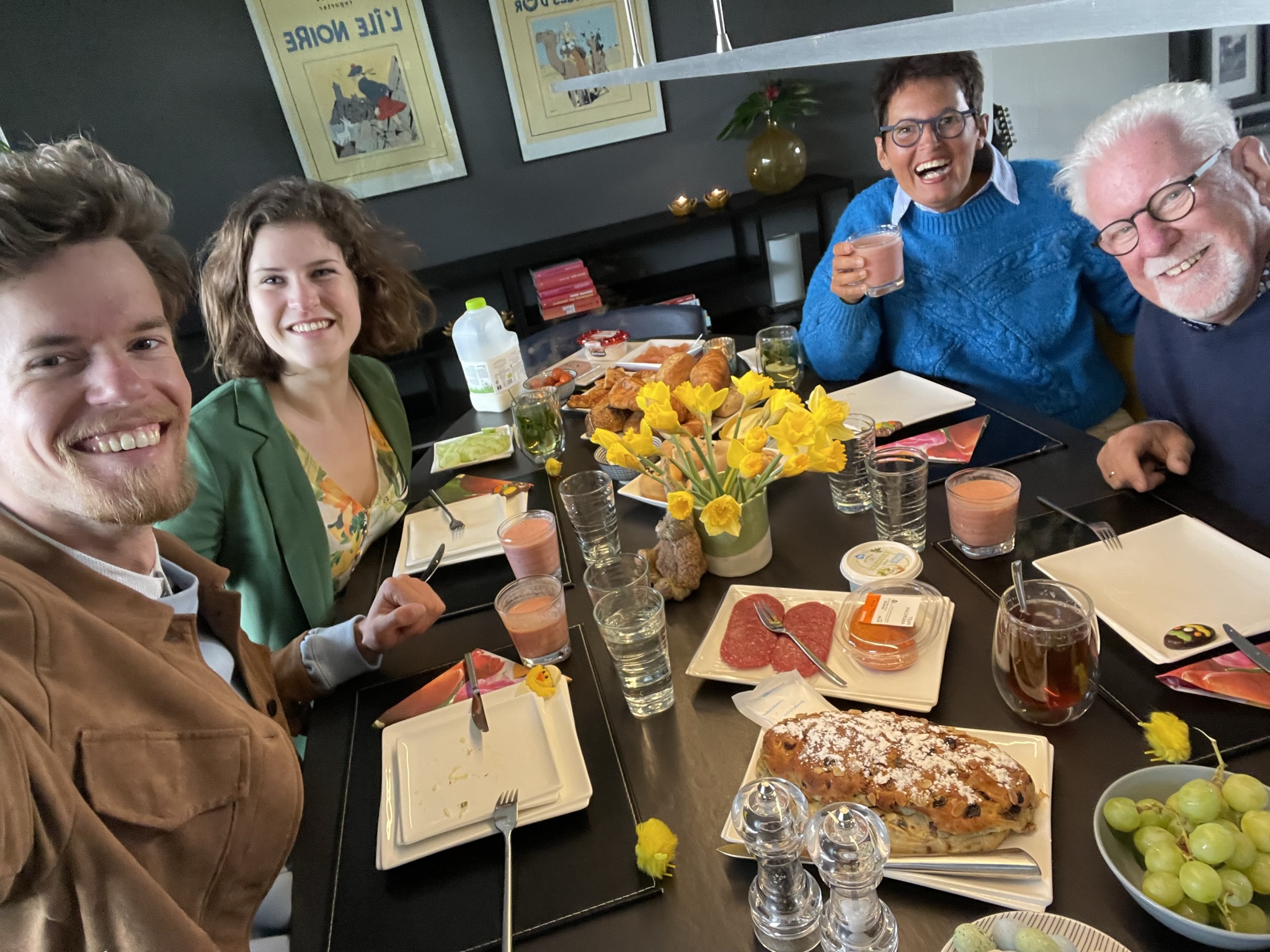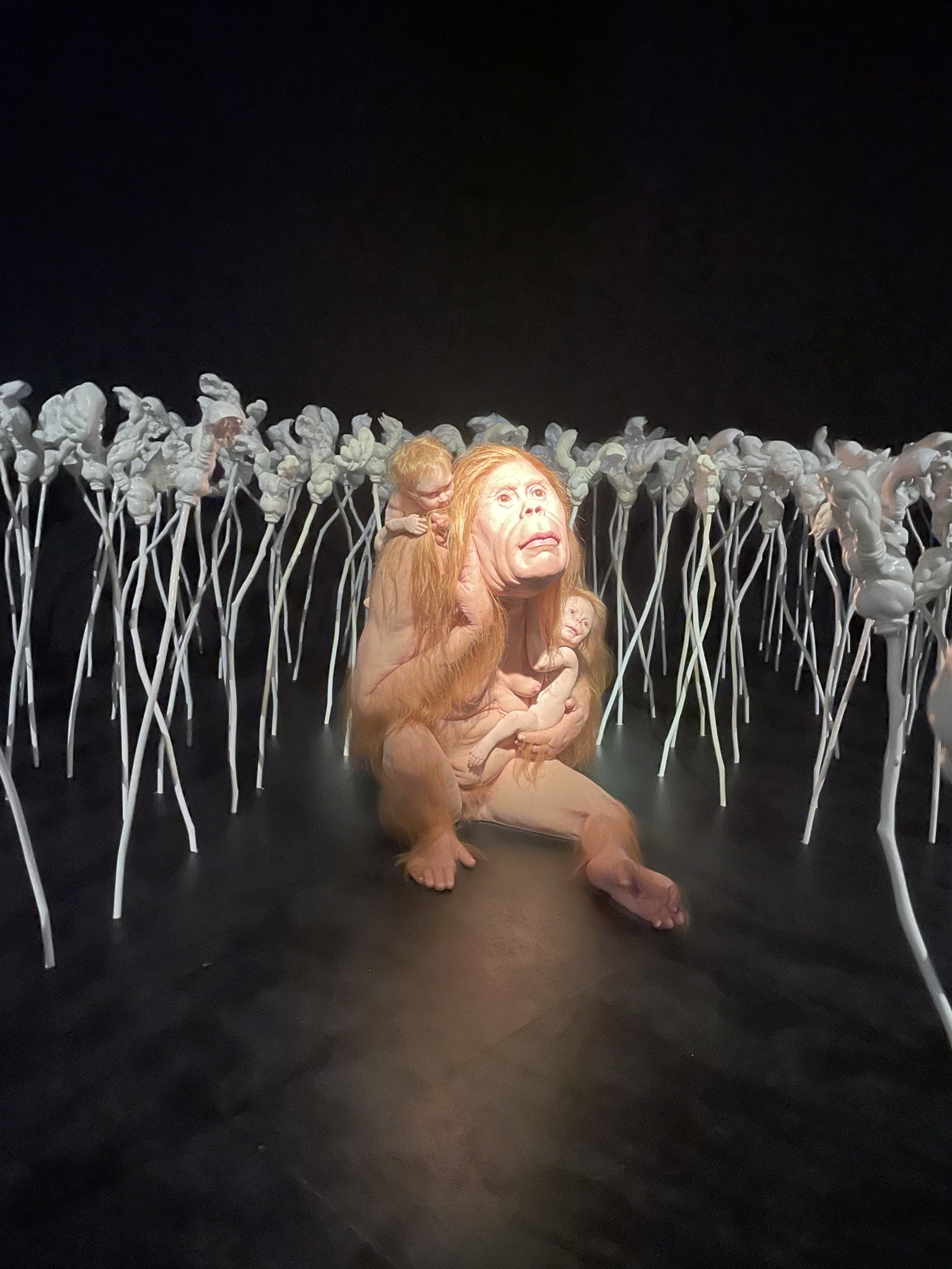 Pasen 2023: Eerste Paasdag even langs bij de twee ouders. De tweede dag een heerlijke brunch met Jasper en Claudia. Eerst laten wij de twee traditiegetrouw nog even paaseitjes zoeken. Na de brunch een bezoek aan de Kunsthal in Rotterdam. Hier een aantal exposities. Meest opvallende is ‘Metamorphosis’ van Patricia Piccinini, een Australische kunstenaar die hyperrealistische sculpturen maakt. Hybriden tussen mens en dier, harige vriendelijke schepsels die elkaar omarmen en fascinerende wezens die je nog nooit hebt gezien, maar toch denkt te herkennen. Piccinini maakt ze van siliconen, haar en glasvezel. Veel van haar creaties zijn naakt, harig en voorzien van eeltige voeten en soms weerzinwekkende lange nagels. Ze zouden niet misstaan in een Efteling-attractie of in Harry Potterfilms. Bijzonder is ‘The Field’, dat bestaat uit 3000 dierachtige bloemsculpturen, waarin diverse figuren verstopt liggen.