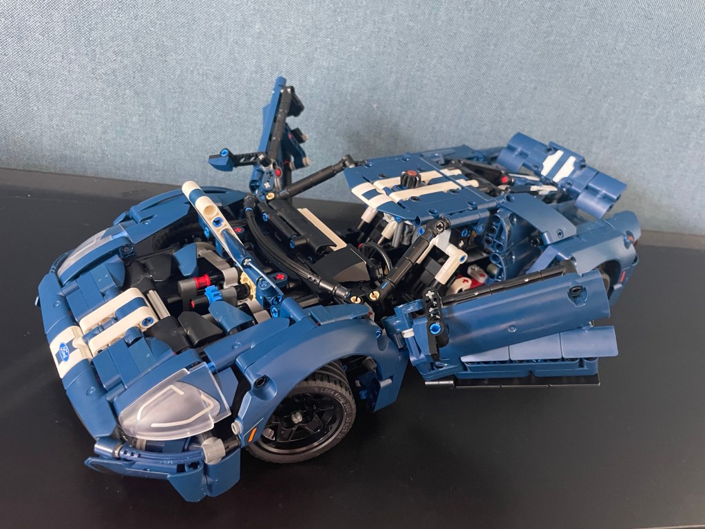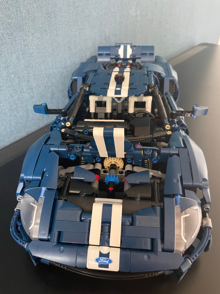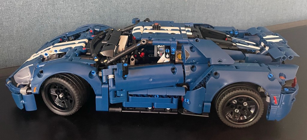 Project Ford GT: Nummer 2 van de Lego projecten is af. De blauwe Ford GT vergezelt zijn iets grotere broeder de Porsche. Mooi bouwwerk geworden. Echt leuke hobby. Nooit meer dan een uurtje achter elkaar aan werken, anders word je slordig in het verwerken van al die honderden mini-onderdelen. Je ziet dan wel eens een onderdeeltje over het hoofd op de bouwtekeningen. Uit elkaar halen is dan een heel gedoe. Nu op zoek naar project 3. Waarschijnlijk de rode Ferrari, zodat het drietaal in de vaderlandse kleuren rood, wit en blauw staat te pronken. Eerste bod is uitgebracht. Wel jammer dat Lego bij deze automodellen niet uitgaat van een soort standaard schaal. Verschillen in grootte van de modellen vallen zo nogal op.