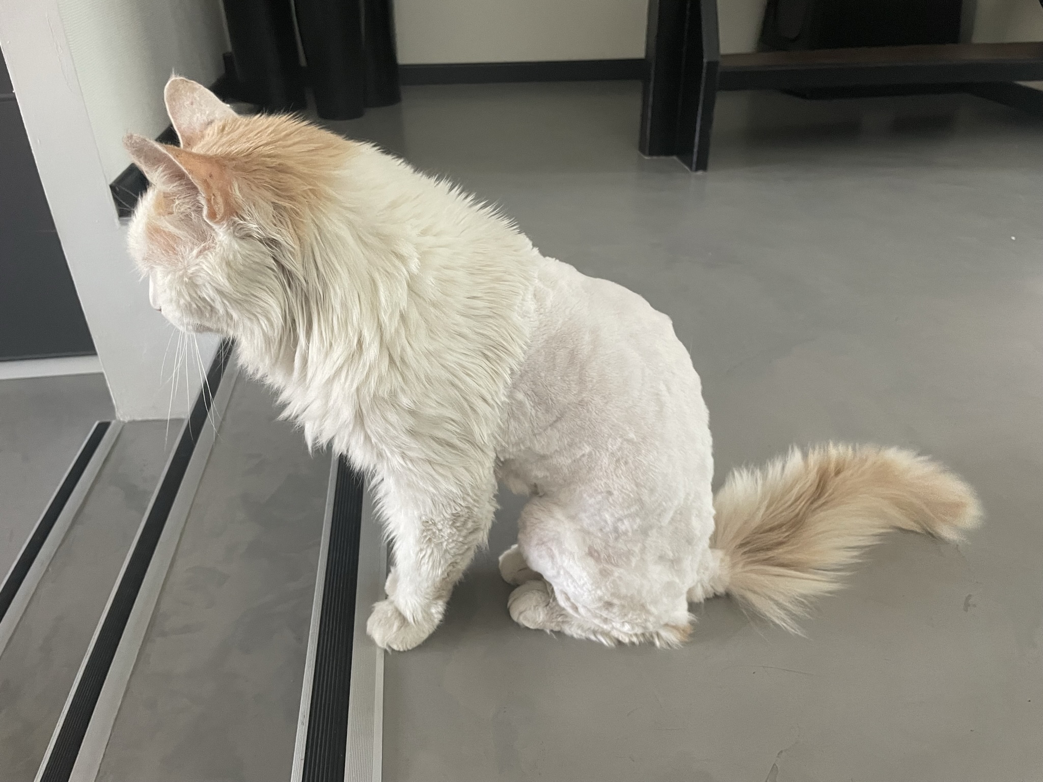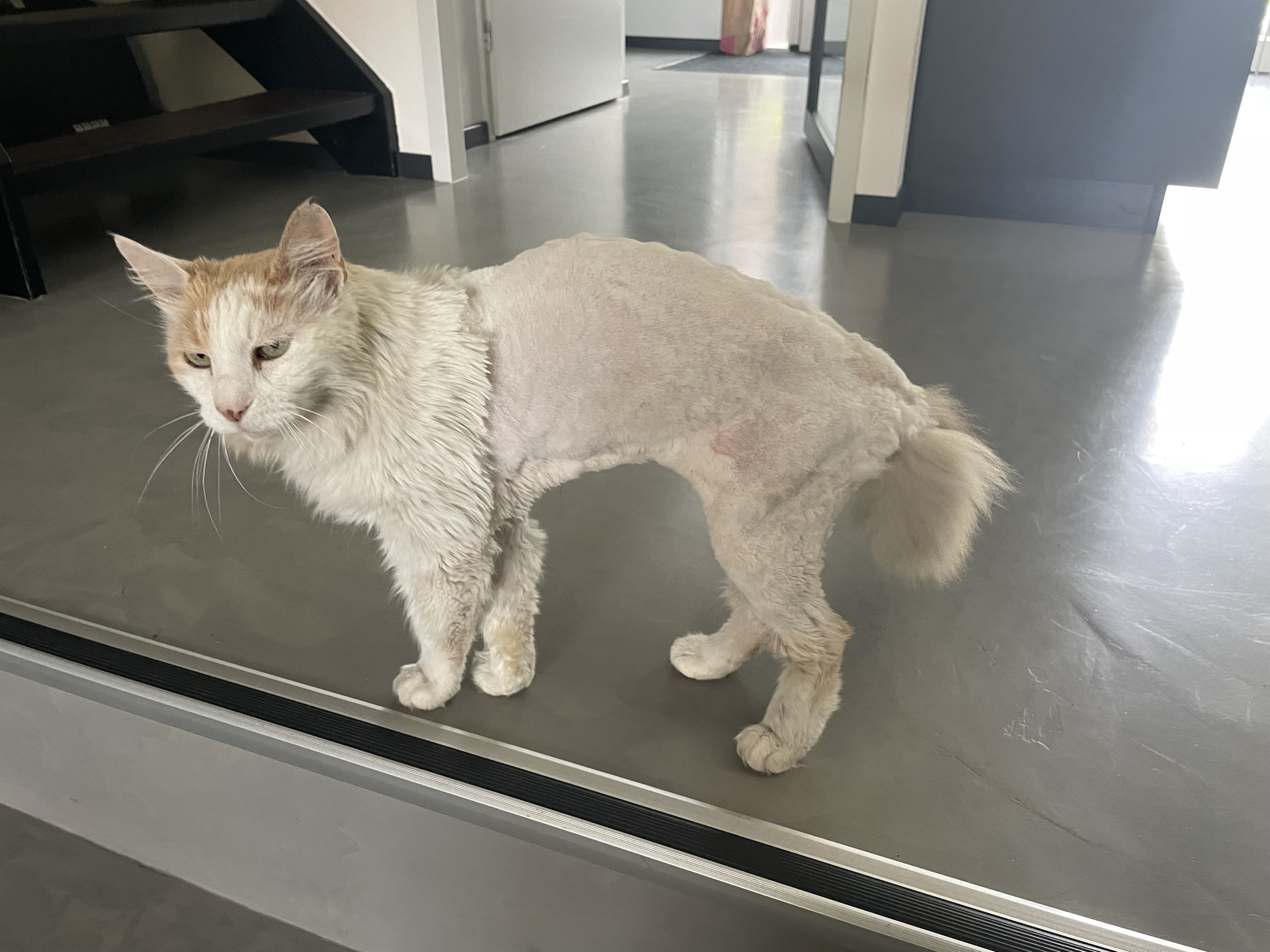 Icky(pedia): “Ja, ik zie je denken bij deze foto’s. Nee, het is niet leuk. Niet lachen dus. Omdat ik mijn vacht niet meer zelf kan onderhouden, zat ik onder de klitten. Kwam deze week die mevrouw weer met die werktafel en dat verschrikkelijke scheerapparaat. Ik weer gillen en krijsen natuurlijk. Maar, in een ijzeren houtgreep gehouden. En mijn vrouwtje Joyce maar gezellig doorbabbelen met die mevrouw. Tjonge, geen enkel mededogen. We gaan weer een ‘leeuwtje’ van je maken, riep die mevrouw met een grijns. Is al het derde jaar op rij. Nou, lekker hoor. Berenkoud zonder mijn jas. En omdat ik zo afval zie ik er helemaal uit als een gratenkast. Kan ik weer een paar maanden voor gek rondlopen. Alle buurkatten kijken mij aan alsof ik van een andere planeet kom. En als ze willen vechten staan hun nagels gelijk in mijn blote velletje. Ik vind het niet eerlijk. O nee!! En wanneer je deze week B&B vol liefde hebt bekeken dan weet je dat dit soort ervaringen niet goed zijn voor je ‘zonnevlecht’ en ‘spirualiteit’. Geen idee waar dat energiepunt zit en volgens mij is het spiritualiteit, maar vooruit, het voelt waardeloos.