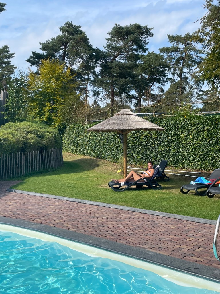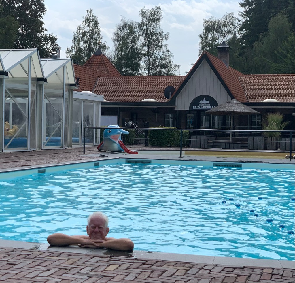 Resort Veluwe: Jasper en Claudia waren nog niet weg, of wij pakten onze reistassen ook weer in. Fietsen op de trekhaak en wegwezen. Na vorige week bungalowpark ‘Esmeer’ met een weekje fietsen tussen Maas en Waal, trokken wij nu naar ‘Resort Garderen’ voor een weekje fietsen op de Veluwe. Een prachtig nieuw bungalowpark van onze favoriete club Topparken. Dat inpakken en wegwezen is altijd een bijzondere gebeurtenis in huize Gritter. Het vereist namelijk een zekere alertheid van mijn kant wat er allemaal moet worden meegenomen. Wij pakken onafhankelijk van elkaar in onder de noemer dat het ieders verantwoordelijkheid is wat er mee moet. Alleen bij een vakantievlucht, houd ik de kilo’s in de gaten. Maar behalve individuele spullen is er nog zoiets als gezamenlijke spullen. Joyce is een enthousiaste vertrekker. Ze gooit (bij wijze van spreken-spot) een paar onderbroeken en een tandenborstel in een tas en zit al stralend in de auto te wachten dat ik de startknop indruk voor vertrek. Ik ben dan nog aan het verzamelen, want behalve die onderbroek is er nog wel wat meer nodig. Voor een vakantie in een bungalow ben ik een echte ouderwetse Nederlander. Niet dat ik gewapend met zakken aardappels en een voorraad conservenblikjes op stap ga, maar een voorraadje voedsel om de eerste en tweede dag door te komen, vind ik wel handig. De ervaring leert dan dat, voordat wij de straat uit zijn, ik alweer rechtsomkeert moet maken om nog wat vergeten spullen op te halen. Want er moet ook gekookt en gegeten worden, een spelletje worden gedaan en natuurlijk mijn voorraad pillen. De vorige week had ik mij niet helemaal goed voorbereid en ja dan gaat het mis. We zijn ongeveer drie keer teruggereden voor manco’s. En eenmaal op het reisdoel aangekomen misten er nog wel wat dingen. Dit keer was ik dus alert. Zelfs de pakketten met maaltijden van ‘The Green Chef’ die Jasper voor ons had achtergelaten zaten, inclusief alle extra’s die je zelf moet toevoegen, in de tas en koelbox. De eerste dagen zijn alvast heerlijk. Lekker gefietst door de bossen en over de heide en natuurlijk de nodige terrasjes aangedaan. Het park heeft een fraai buitenzwembad dat vanwege het mooie weer nog even open is gebleven. Toch wel bijzondere om half september nog aangenaam in het water te liggen. Na het weekend wordt het naar men zegt wat minder met het weer, maar er staan nog wat leuke bezoekjes aan vrienden in deze omgeving op het menu. En we sluiten komende woensdag af met een dagje wellness.