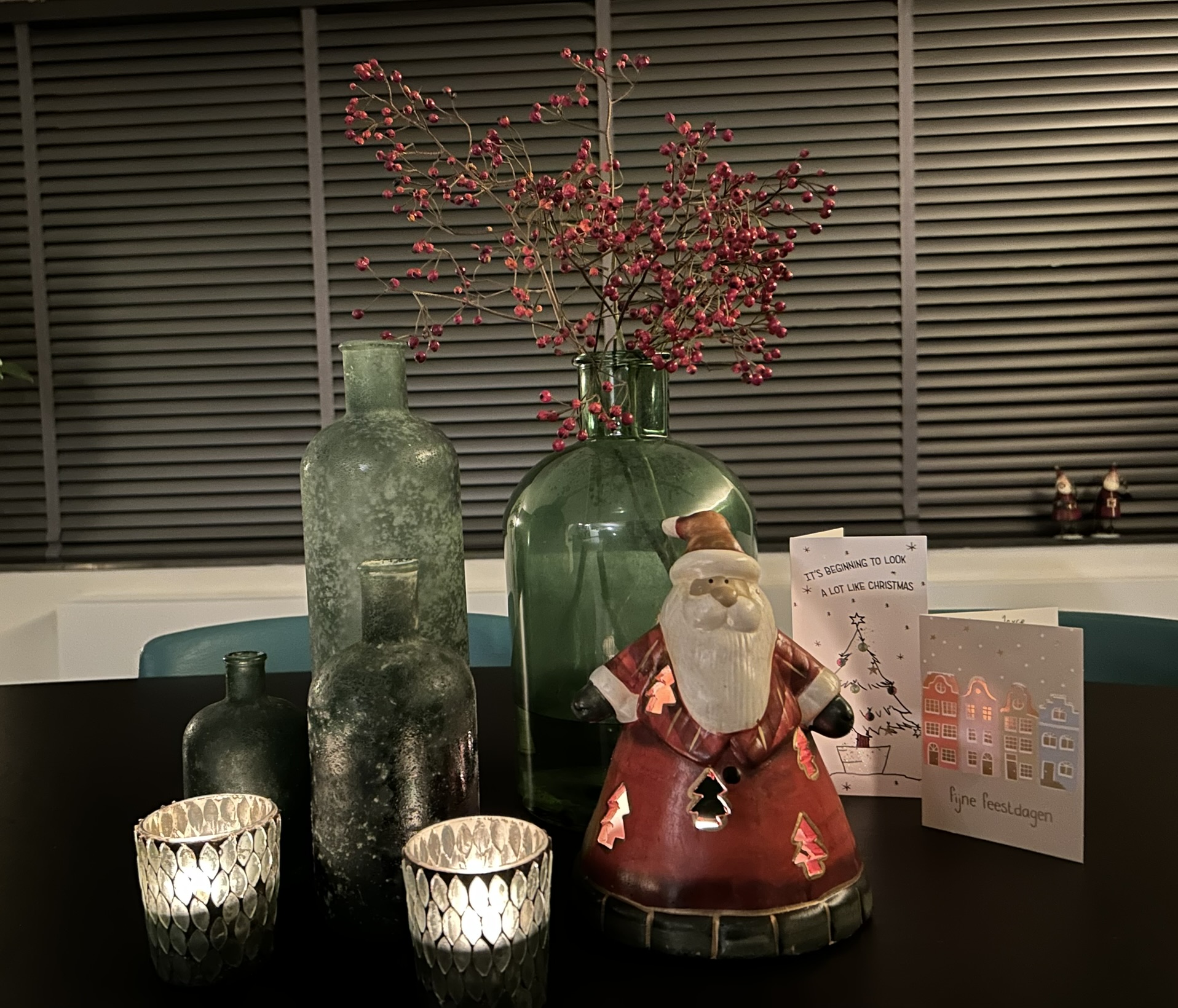 Kerstversiering: Het is elk jaar weer een verrassing wanneer wij alle dozen met kerstversiering uit de kast halen. Je vergeet toch vaak wat je in voorgaande jaren allemaal hebt aangeschaft. Ik zorg meestal voor de boom en buitenverlichting en Joyce voor alle losse objecten. Best gezellig wanneer alles weer een plekje heeft gekregen. Een kleine greep uit de versiering.