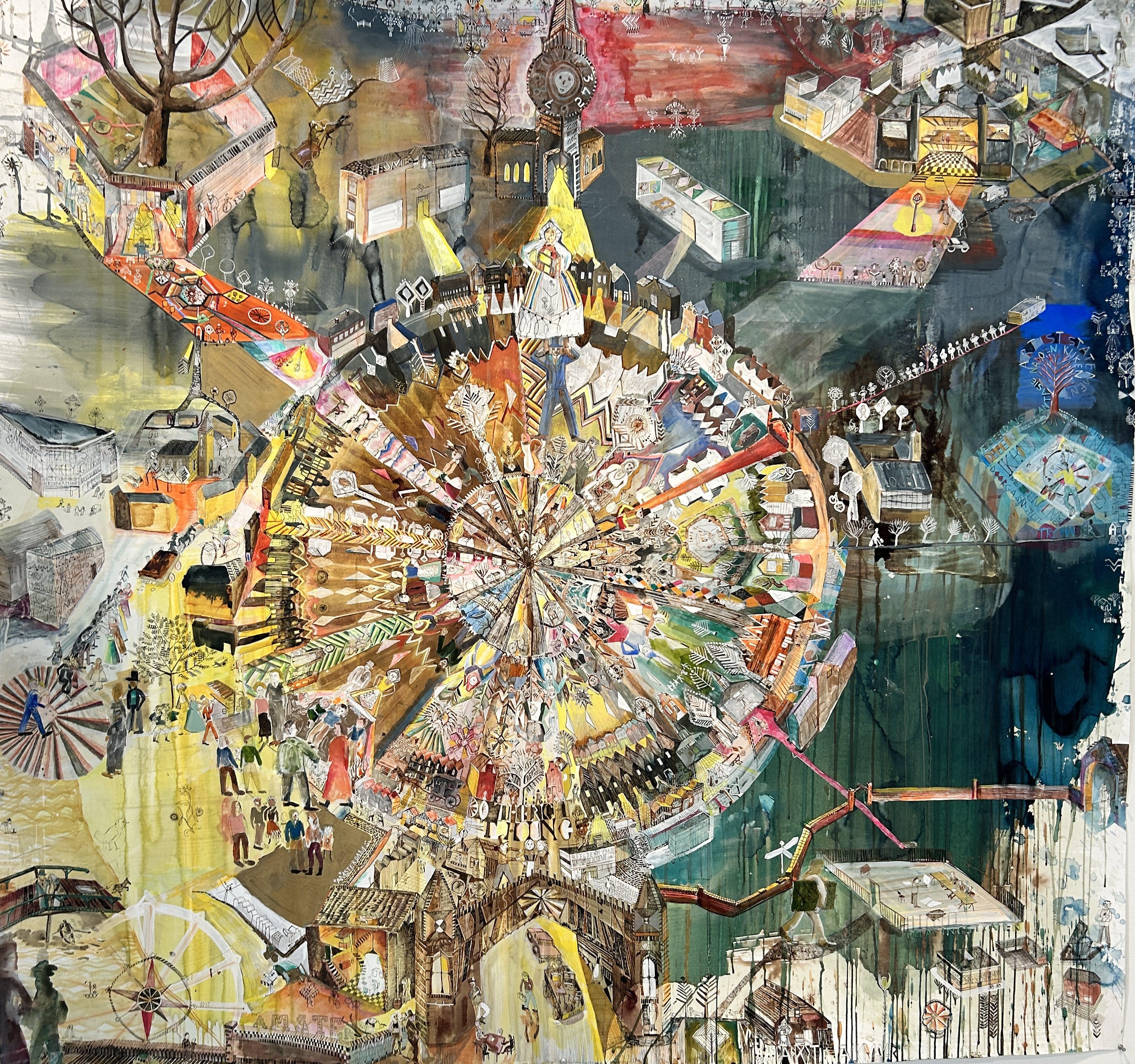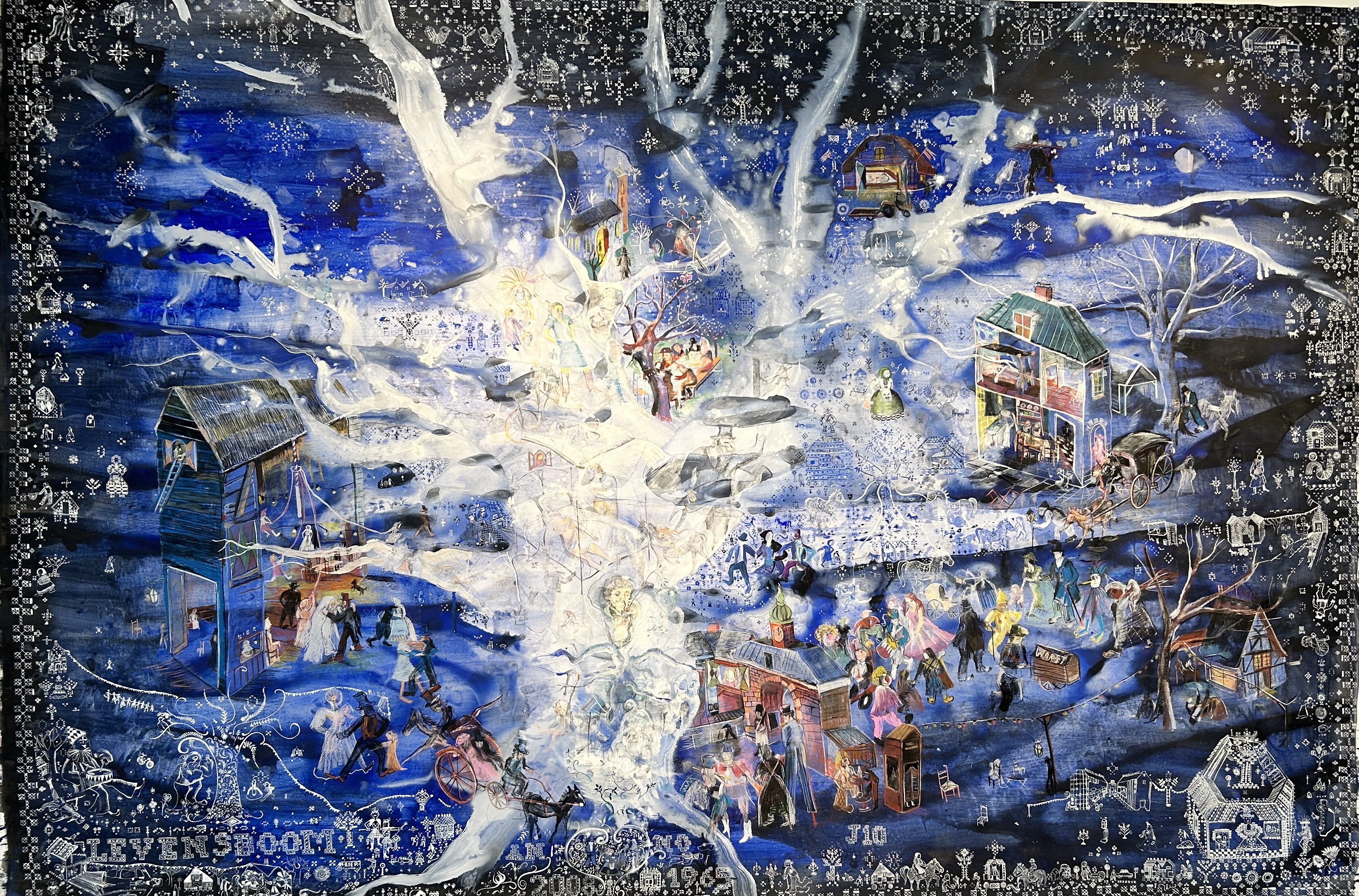 Museum Jan: Deze week weer eens een bezoek gebracht aan Museum Jan in Amstelveen. Een ontzettend leuk en klein museum in het oude dorp van Amstelveen. Het museum heeft altijd fraaie en verfrissende tentoonstellingen. Wij komen er met regelmaat. Dit keer o.a. werken van Jantien Jongsma. Zij ontwikkelde zich als een meester in het vertellen van verhalen met gemengde technieken op papier. Haar werk leest als een getekend dagboek. De fases van het leven staan centraal, met haar eigen levensloop als uitgangspunt. Hierbij maakt ze gebruik van de vormentaal afkomstig uit de volkskunst en handwerken. In de patronen van oude borduurwerkjes ziet ze een samenvatting van het leven, van traditionele dagelijkse taferelen van geboorte tot de dood, maar ook stambomen en de jaargetijden. Het bekijken van de werken was echt een genot, omdat je steeds weer nieuwe dingen ziet. Klik even op de foto’s om de afbeeldingen op ware grootte te zien, anders mis je de details.