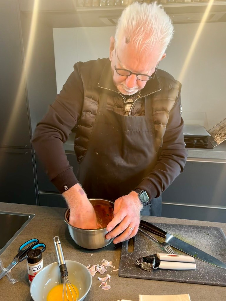 Saucijzenbroodjes: Naast het dagelijks koken, mag ik ook graag wekelijks iets bakken. Tarte tatin (omgekeerde appeltaart), oma’s appeltaart, boeren-, kaneel- of stroopwafelcake, brownies, chocolade cupcakes, kokosmakronen of een lekkere boterkoek wisselen elkaar af. Joyce slaakt dan wel eens een diepe zucht, want al die baksels vindt zij toch een aanslag op haar taille. Ze zou natuurlijk kunnen zeggen dat ik het dan maar alleen moet opeten, maar…..nee, dat doet ze dan weer niet. Dus peuzelen wij de baksels in de navolgende dagen gezamenlijk of met vrienden/familie weg. Deze week las ik de ‘Ovenbijbel’ eens van voor naar achteren door en stuitte o.a. op een likkebaardend lekker recept voor saucijzenbroodjes. Joyce legde de stappen vast in een fotoreeks. De broodjes zijn gelukt en heerlijk. Voor de liefhebber heb ik de ‘Ovenbijbel’ digitaal.