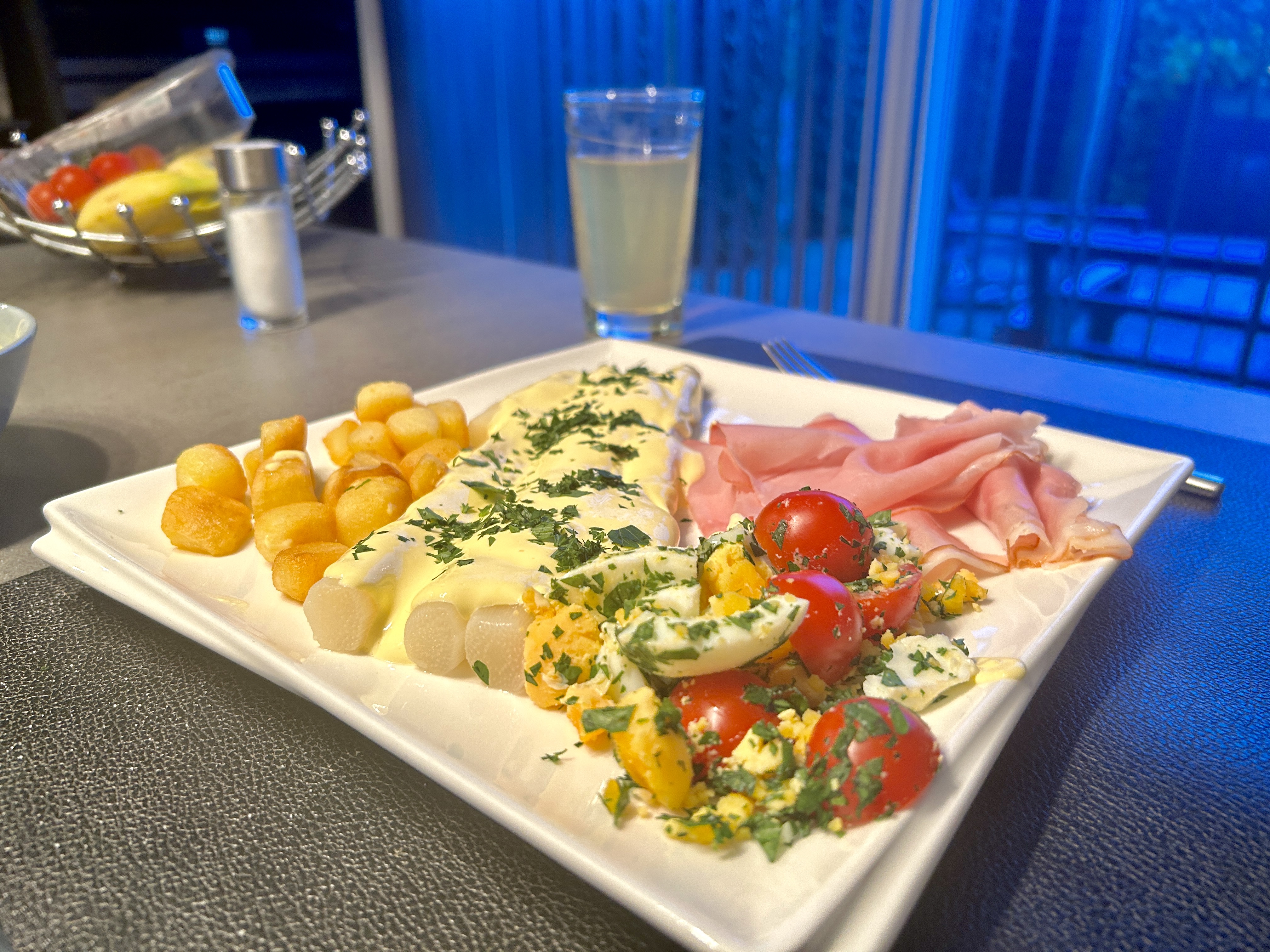 - ongeveer 500 g verse witte asperges (afhankelijk van de dikte = 6 à 7 asperges)