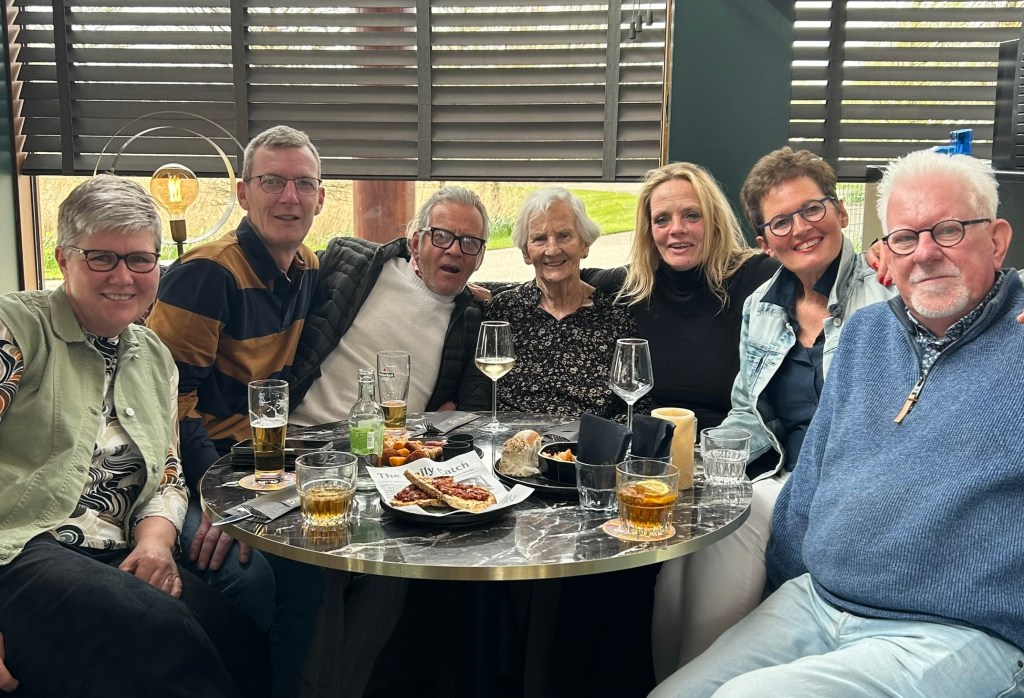 Familieborrel: De afgelopen weken waren broer/zwager Erik en schoonzus Natascha weer even in het land voor enkele verplichtingen. Hoewel wij elkaar regelmatig spreken via beeldverbinding, was het toch alweer een jaar geleden dat wij elkaar live spraken. Dit weekend rijdt het tweetal terug naar Spanje om aan hun B & B avontuur van dit jaar te beginnen, het beheer van een B & B van twee Amerikanen. Pas volgend jaar start het echte avontuur in hun eigen B & B. Daar is alle administratieve rompslomp inmiddels van achter de rug. Dus vanaf 2025 wacht er een prachtig nieuwe B&B locatie in Zuid-Spanje en is er voor hun zekerheid voor vele jaren. Vanwege het afscheid hadden wij, speciaal voor de moeder van Joyce, Paul en Erik, een aangeklede afscheidsborrel georganiseerd in de Lieveling in Hoofddorp. Erg gezellig.