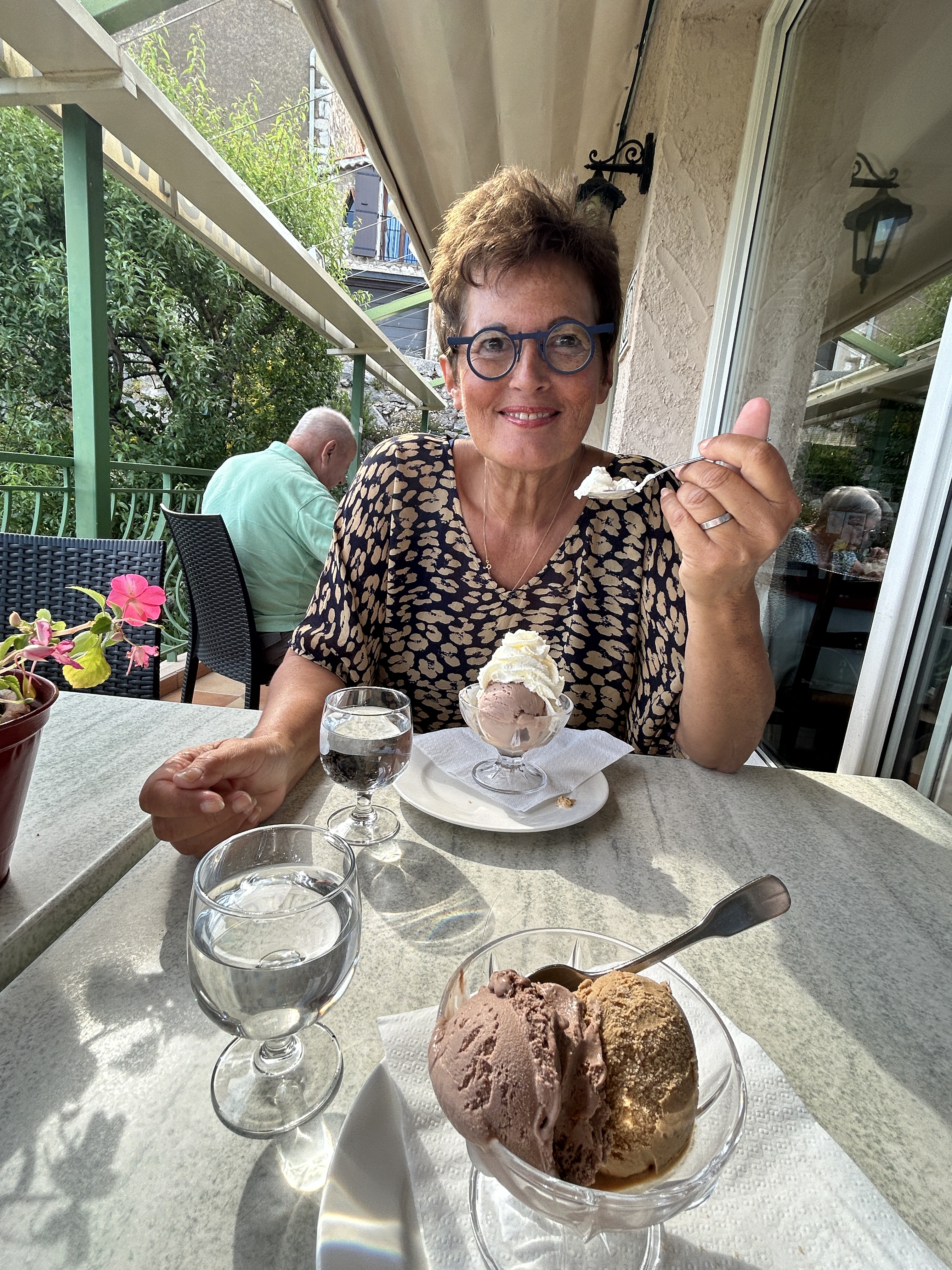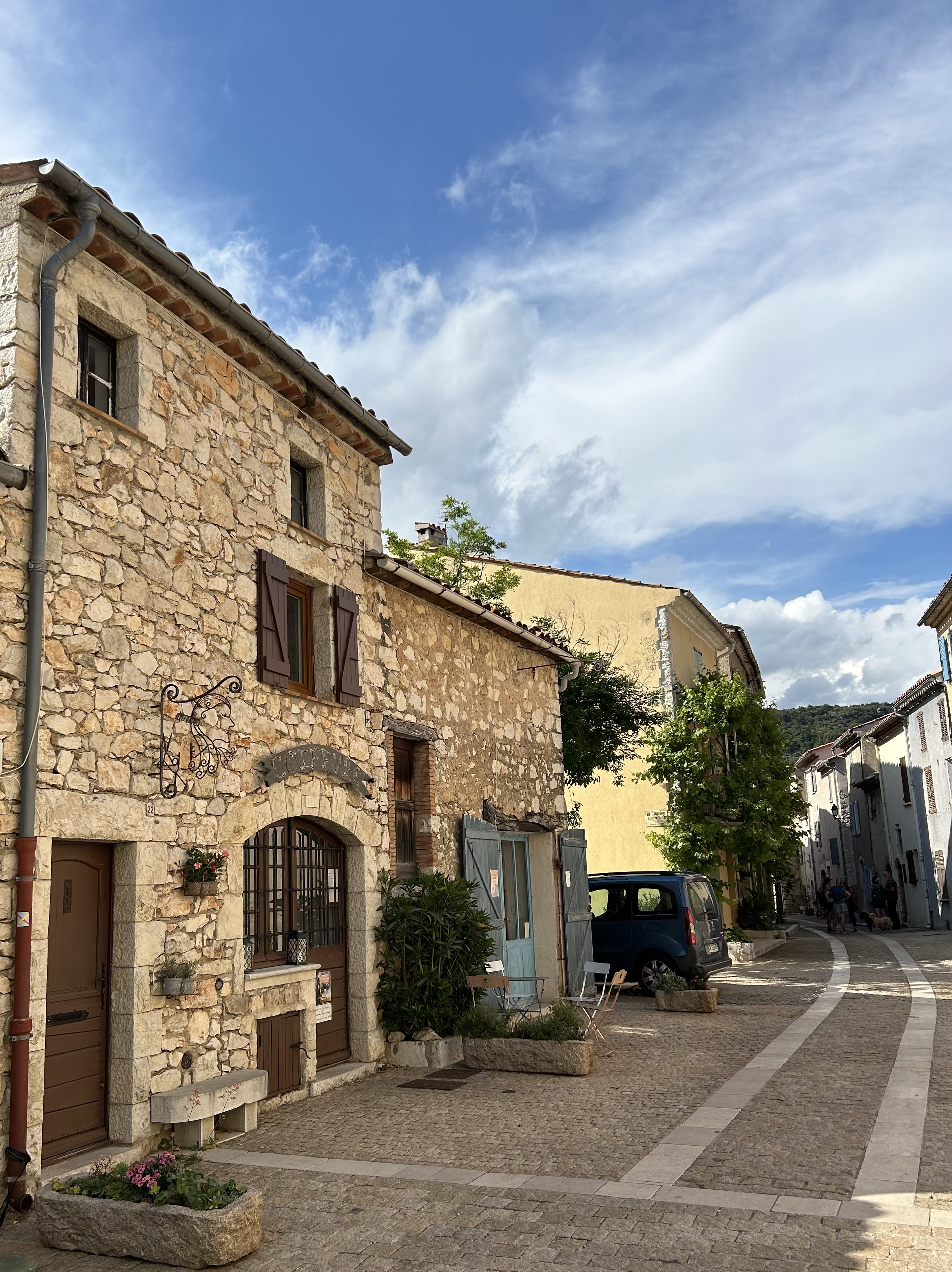 Mons. Een mooi bergdorp in de Var is Mons. Er zijn drie routes om er te komen. Wij kozen, achteraf gezien, de moeilijkste van 40 km bestaande uit steile en smalle bergweggetjes. De meeste net breed genoeg voor één auto. Wij hielden ons hart vast dat er een tegenligger zou opduiken, want dan had één van de twee kilometers achteruit de berg af moeten rijden. Godzijdank bleef ons dat bespaard en waren er alleen tegenliggers op de stukken met een kleine uitsparing, waar bij het passeren slechts een vingerdikte ruimte over was. Joyce kreeg er de bibbers van. Maar het uitzicht vanaf Mons was fenomenaal. Je zag in de verte Cannes en Fréjus en zelf de contouren van Corsica. Echt zo’n godverlaten bergdorp, waar je je van afvraagt of er wel iemand woont. Gelukkig was er een ijssalon.