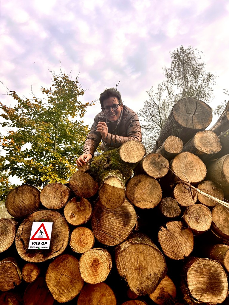 Op de fiets: Het mooie weer verleidde ons nog tot enkele fietstochten. De eerste voerde ons rond het dorp de Lage Vuursche. Daar hebben wij vaker gefietst. De tweede tocht was echter een grote verrassing, nl. ‘de creatieve stadsbossen van Almere’ (zie: Fietsknooppunten netwerk) . Bij de Flevopolder denk je al gauw aan grote open vlaktes, maar verrassend genoeg is er een erg mooie bosroute met grillige paadjes. En passend doe je nog wat delen van Almere aan. Ook op de route het complex van ‘Stichting Aap’. Een bezoekje waard. Het werkte inspirerend want Joyce moest natuurlijk ook weer op de boomstammen klimmen.