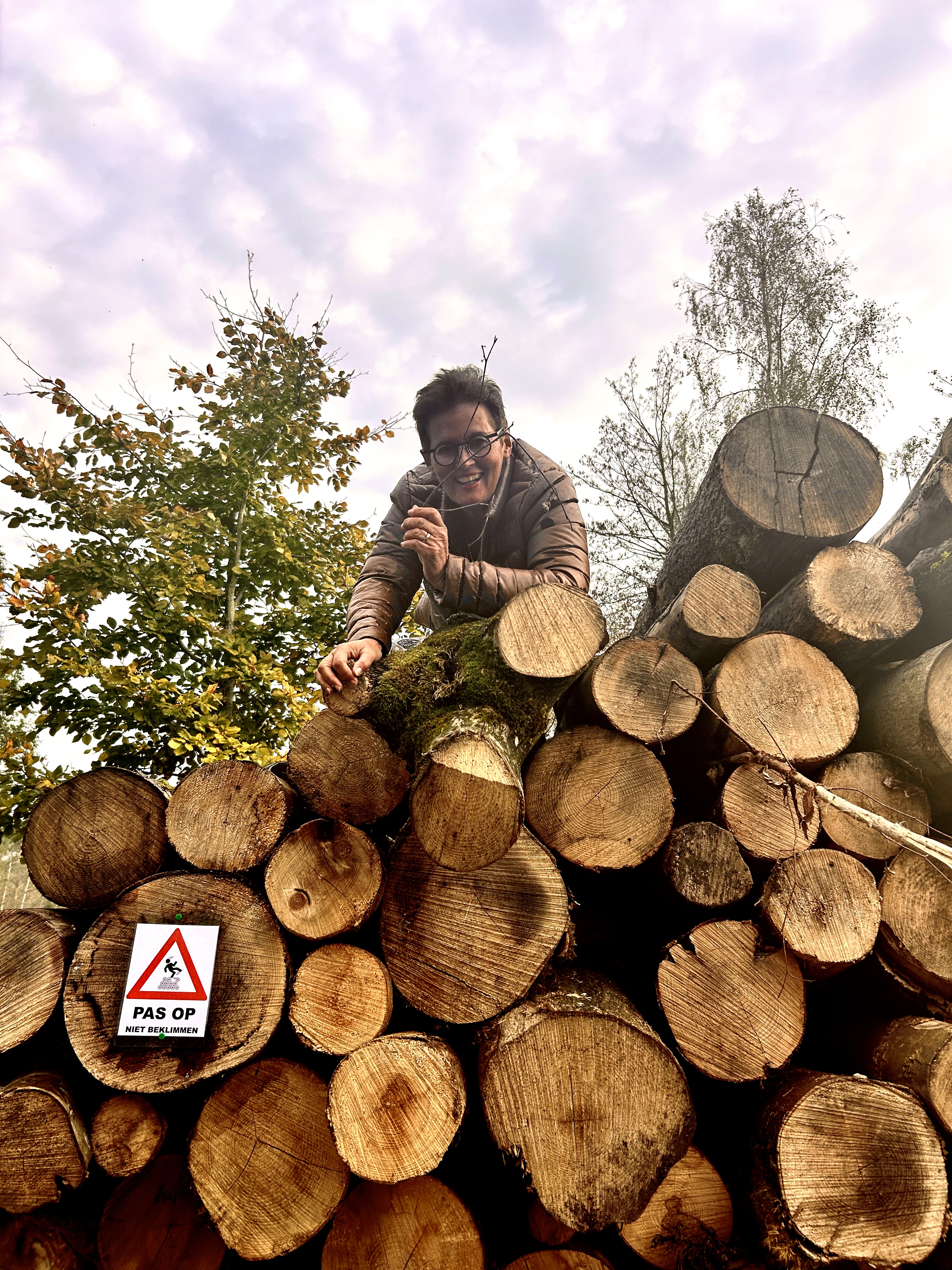 Op de fiets: Het mooie weer verleidde ons nog tot enkele fietstochten. De eerste voerde ons rond het dorp de Lage Vuursche. Daar hebben wij vaker gefietst. De tweede tocht was echter een grote verrassing, nl. ‘de creatieve stadsbossen van Almere’ (zie: Fietsknooppunten netwerk) . Bij de Flevopolder denk je al gauw aan grote open vlaktes, maar verrassend genoeg is er een erg mooie bosroute met grillige paadjes. En passend doe je nog wat delen van Almere aan. Ook op de route het complex van ‘Stichting Aap’. Een bezoekje waard. Het werkte inspirerend want Joyce moest natuurlijk ook weer op de boomstammen klimmen.