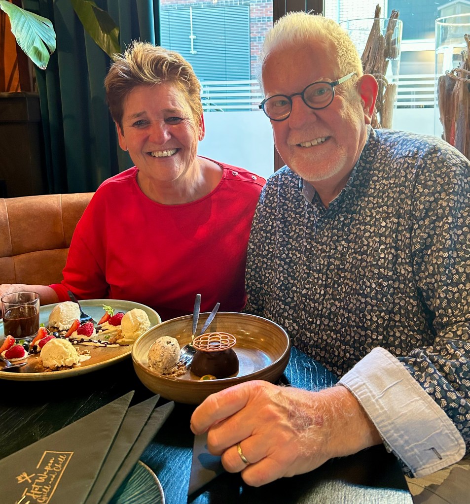 Eten tot besluit: Vanwege andere verplichtingen sloten wij onze week in Epe af met een heerlijk etentje. Het was weer genieten bij Henk en Lia. Mooie verhalen van Henk over het boerenleven, de warme belangstelling en hartelijkheid van Lia en onze openhartige gesprekken die wij iedere keer weer voeren. We hadden het voornemen om half mei terug te keren. In het Isala ziekenhuis in Zwolle was de dialyse opnieuw geregeld. Het zou iets anders lopen.