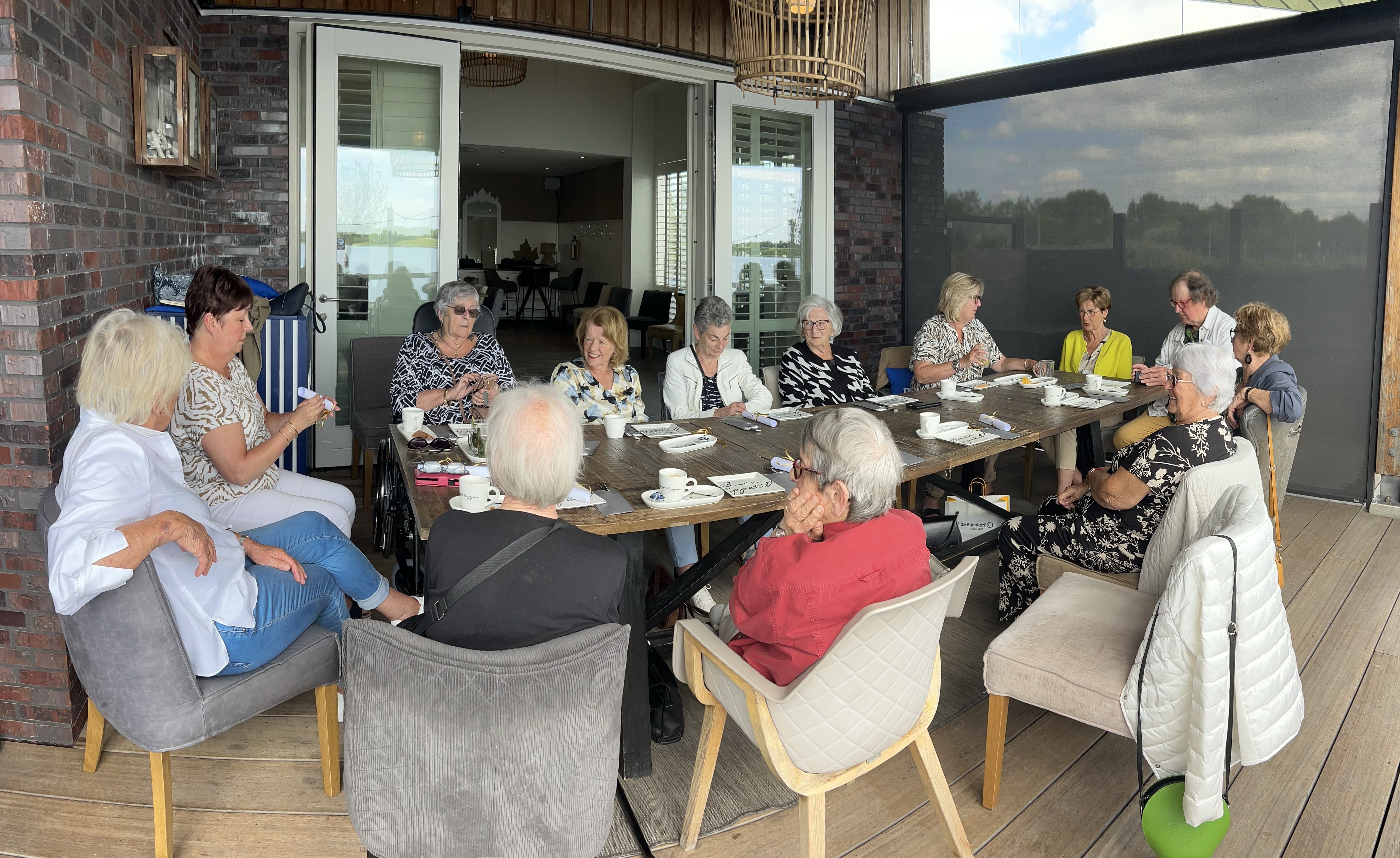 Reunie kleuterleidsters: Daags na onze thuiskomst bezocht Joyce de bijna jaarlijkse reünie van de kleuterleidsters. Ooit een flink gezelschap maar inmiddels aanzienlijk uitgedund. Allemaal krasse knarren die weer het nodige hadden meegemaakt sinds vorig jaar. Joyce paste er met haar inmiddels grijze koppie helemaal tussen. (Ha, ha: ik zal door deze opmerking wel een nachtje op de bank moeten slapen)