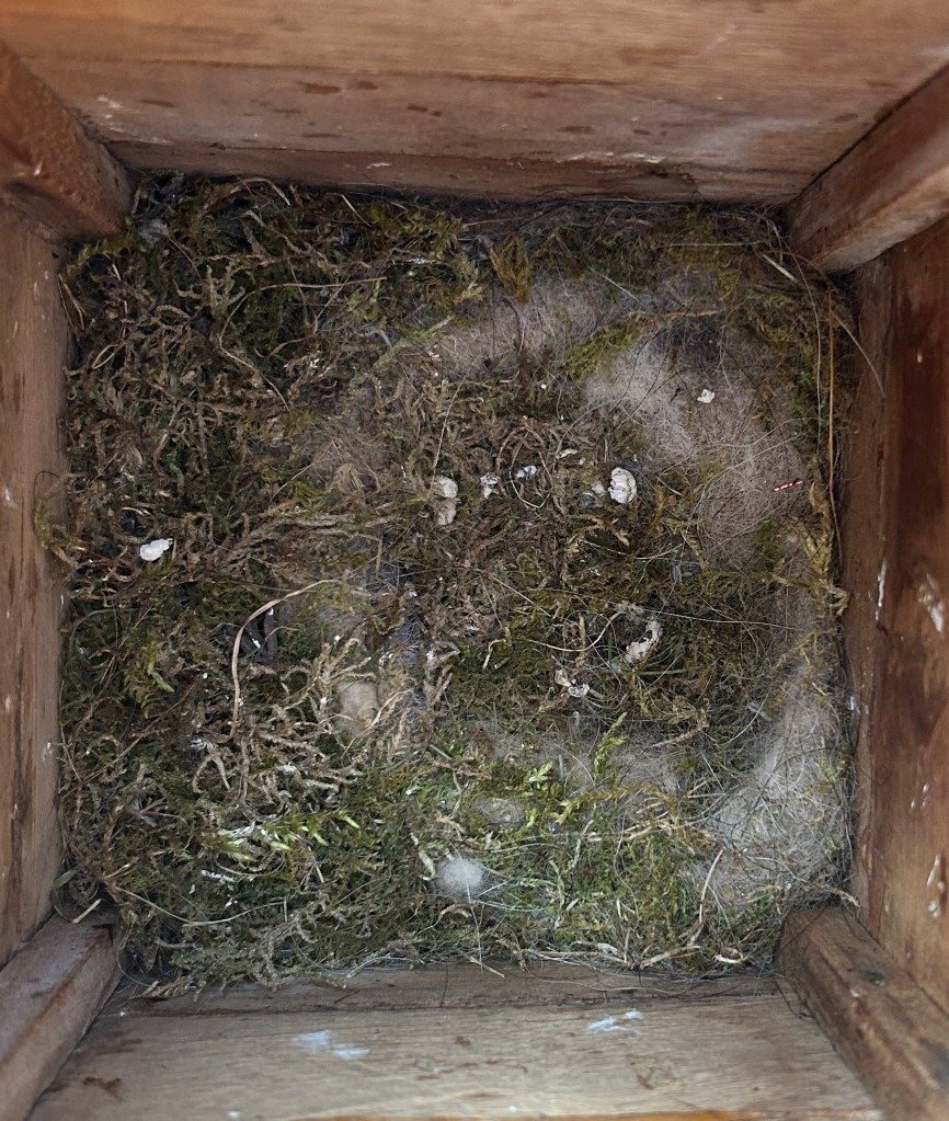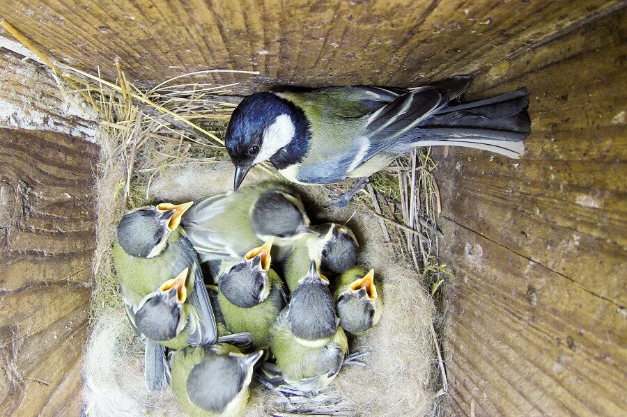 Uitgevlogen: Het nest van de koolmeesjes is weer leeg. Een paar weken lang vloog vader koolmees heen en weer naar het nestkastje. Eerst met nestmateriaal en toen de eitjes gelegd en uitgebroed waren, werd voedsel aangevlogen voor moeder en kinderen. Vrolijk gepiep klonk gedurende een paar weken, wanneer een nieuw wurmpje naar binnen werd gevlogen. En dan op een ochtend zat één van de kinder-koolmeesjes ineens in de tuin. Ik zag hem net op tijd. Hij/zij mij overigens ook en dat gaf, begrijpelijk als je nog niet zo goed kan vliegen, wat angstige momenten. Maar vliegen leer je snel, dus wist de kleine weg te komen. Al zag het er nog wel een beetje onbeholpen uit. Wij waren daarna alert op het uitvliegen van de rest van het kroost. Helaas koos de koolmees familie ervoor om dat precies op een moment te doen, dat wij er een paar uur niet waren. Toen wij thuis kwamen, klonk er geen gepiep meer in het nestkastje. Een dag of wat later het klepje van het kastje opgetild en inderdaad: Leeg. Beetje onbevredigend, maar wel blij dat de gezinsuitbreiding van de koolmees familie grotendeels gelukt is in ons kleine tuintje. Ik zeg ‘grotendeels’, want van eentje vonden wij alleen wat vleugelveren terug. Die is opgesnoept door een ekster (die zijn dol op kleine koolmeesjes) of een kat. Wel volgend jaar een cameraatje plaatsen.
