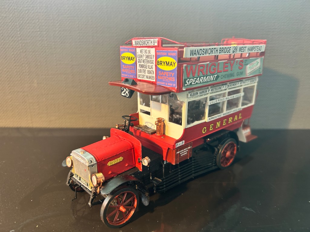 Project Omnibus: Eerder schreef ik over de Engelse omnibus die ik in mijn jeugd in elkaar had gezet. Het was toen nog de tijd van bouwdoosjes die je met lijm en verf tegemoet trad. Mijn broer had mij in maart verrast met een nieuwe bouwdoos van de Engelse omnibus die ons 50 jaar na dato, van alle bouwpakketten, het meest was bijgebleven. Twee maanden lang plakte ik de miniatuur onderdeeltjes met pincet en lijm aan elkaar vast. Ondertussen onderdelen alvast van een kleurtje voorzien, omdat dat na het plakken niet meer kon. En daar verscheen langzaamaan de bus zoals wij ons die herinnerden uit het verre verleden. Trots op het resultaat.