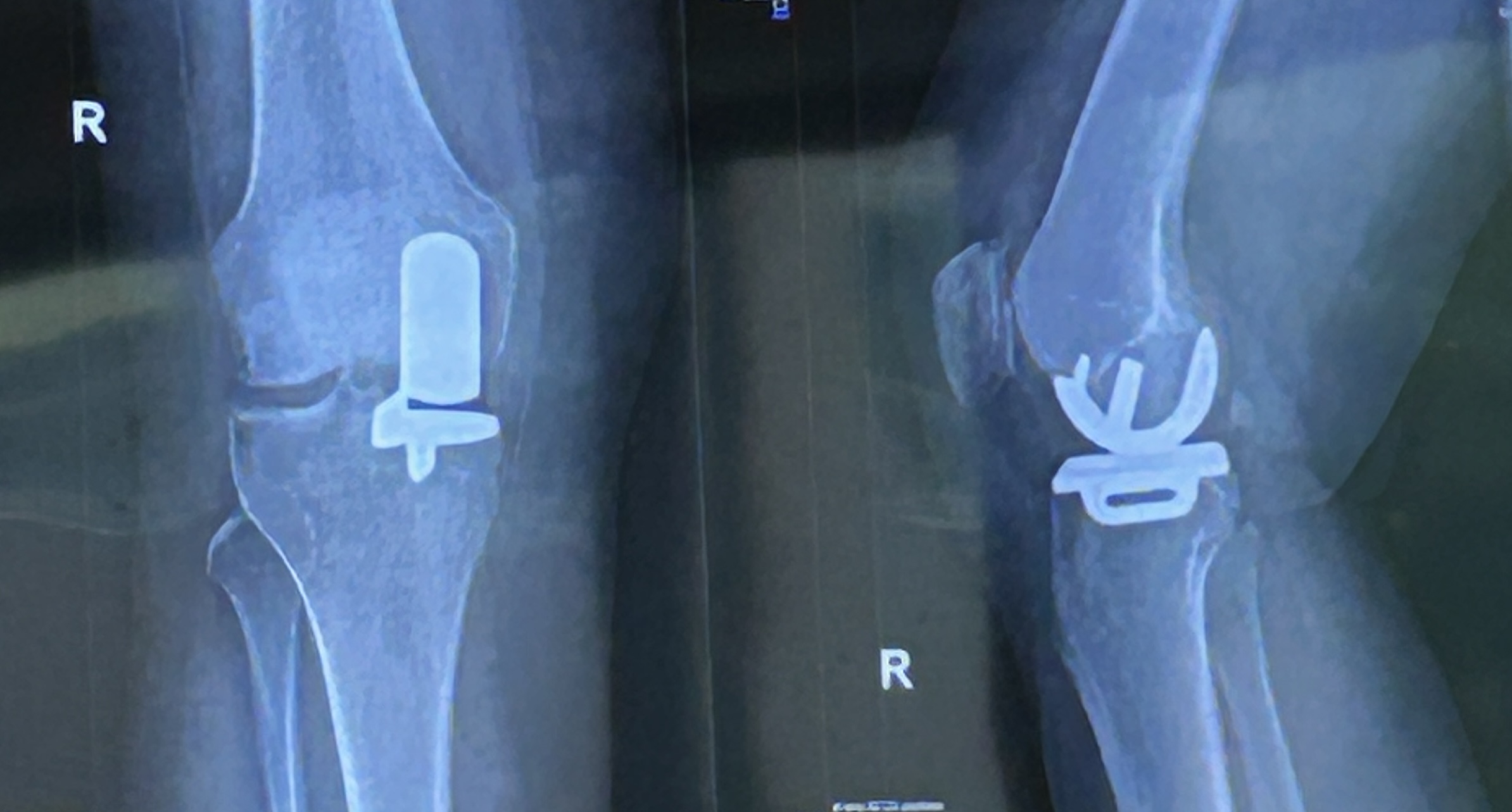 Revalidatie: Het is inmiddels 8 weken geleden dat Joyce een nieuwe (halve) knie heeft gekregen. Het herstel valt nog niet mee. Aan de buitenkant herinnert een klein streepje nog aan de operatie. Op een paar meter afstand valt het bijna niet meer op. Van binnen loopt het echter nog niet gesmeerd. Wij bezochten deze week een afsluitende lotgenoten bijeenkomst. Een groep van zo’n 12 mensen die een nieuwe (hele of halve) knie had gekregen. Net voor de operatie kwamen ze ook bij elkaar. Een arts en een orthopeed bespraken de kort daarvoor genomen röntgenfoto’s en de vorderingen van een ieder werden getest. Bij de één was het gewricht weer soepel als voorheen (iemand rende zelfs alweer) en bij de anderen was het buigen en strekken in allerlei gradaties aanwezig. Joyce bleek de ‘slechtste’ van de klas te zijn en ja, dan moet je nablijven. De arts en de orthopeed bekeken de knie nog eens en kwamen met een dringend advies: “Ga met buig-oefeningen door de pijngrens om daarmee het binnenkapsel van de spieren te laten scheuren. Je merkt zelf dat dit gebeurt en dat voel je, maar het kan geen kwaad. (Oeps!!!) Voor het doorbuigen naar de andere kant leg je je been op een stoel met 3 kilo zand op je knie. Ook dat ga je na een minuut of vijf flink voelen. Half uurtje volhouden. (!!!) En op de hometrainer net zo lang heen en weer trappen tot je rond gaat. De tranen springen je bij dit alles ongetwijfeld in de ogen, maar daarna merk je pas hoe fijn het is om een nieuwe knie te hebben. (Ja, ja, dat is pas vreugde). O ja, je moet wel extra sterke pijnstillers en een maagbeschermer slikken. Blijft angst jouw pijngrens bepalen, dan brengen wij je onder narcose en gaan de knie zelf doorbuigen. Dan scheurt het kapsel pas echt goed, maar dat merk je pas wanneer je uit narcose komt. Dat wil je natuurlijk niet, dus ga aan de slag. Doen jij of wij verder iets, dan verhardt het spierkapsel en blijft de knie de rest van je leven stijf” . Zoooo…dat is een pittig en streng advies! In de films van ‘The Godfather’ noemen ze dat zo ongeveer ‘An offer you can’t refuse’. Er klonken nog een paar ‘Ja maren…’ uit Joyce haar mond, maar dat veranderde niks aan het advies. Dus is er meteen een hometrainer aangeschaft en heb ik zes zakjes met elk een pond aan gewicht aangemaakt. Voor de overige oefeningen waren er voldoende trappetjes en hekjes voor een Squat-oefening in ons huis aanwezig. Joyce werkt inmiddels een paar dagen hard aan de ‘verscheurende kapsel’ oefeningen. Er klinken heel wat ‘Auws’ en ‘Aahs’ en er is veel napijn, maar er is wel vooruitgang. De buighoek is nu 90 graden, maar moet nog naar 110 graden.